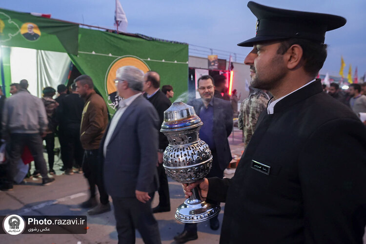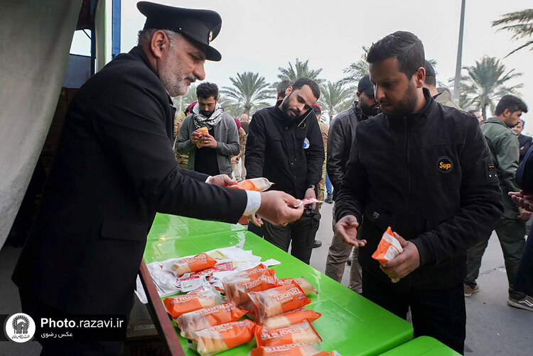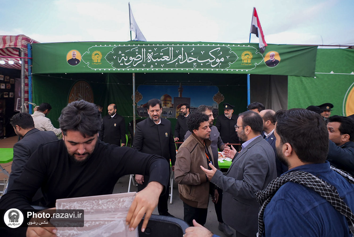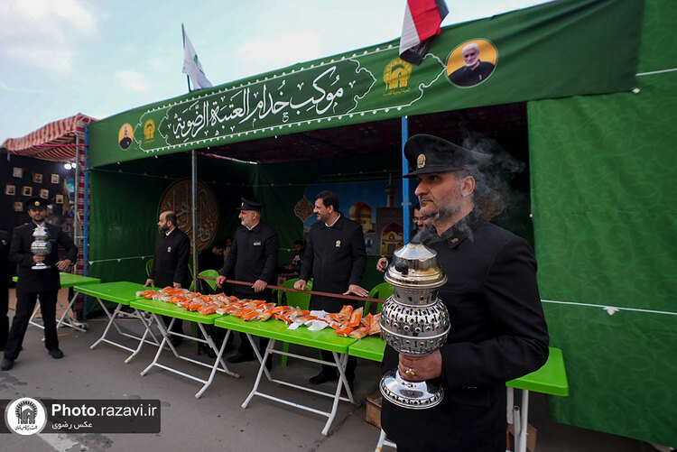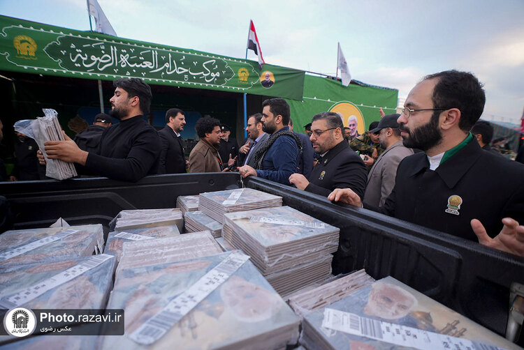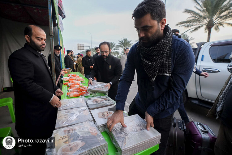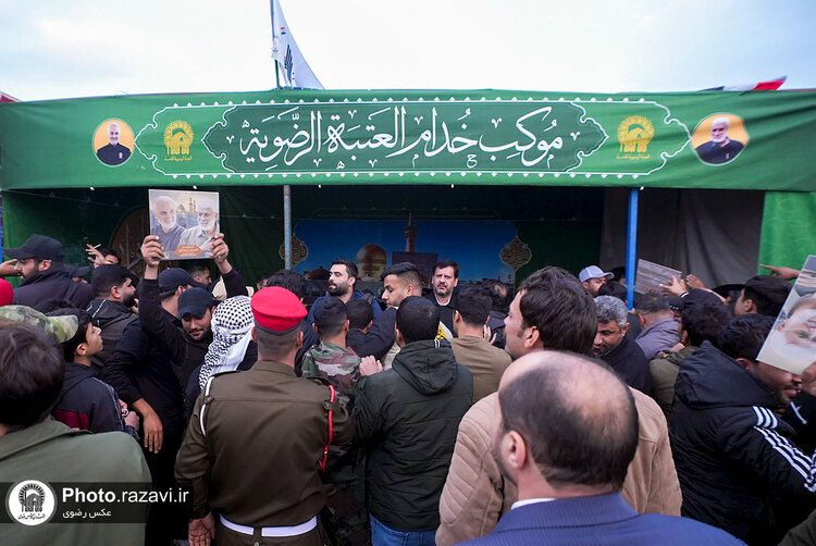 همزمان با سالگرد ترور شهید حاج قاسم سلیمانی و ابومهدی المهندس، خدام حرم مطهر رضوی با برپایی موکب در فرودگاه بغداد از زائران و مسافران پذیرایی کردند.