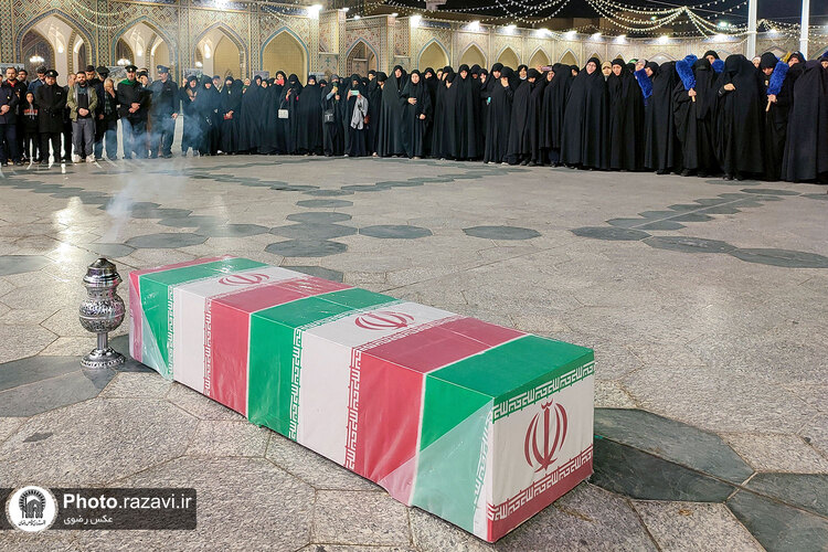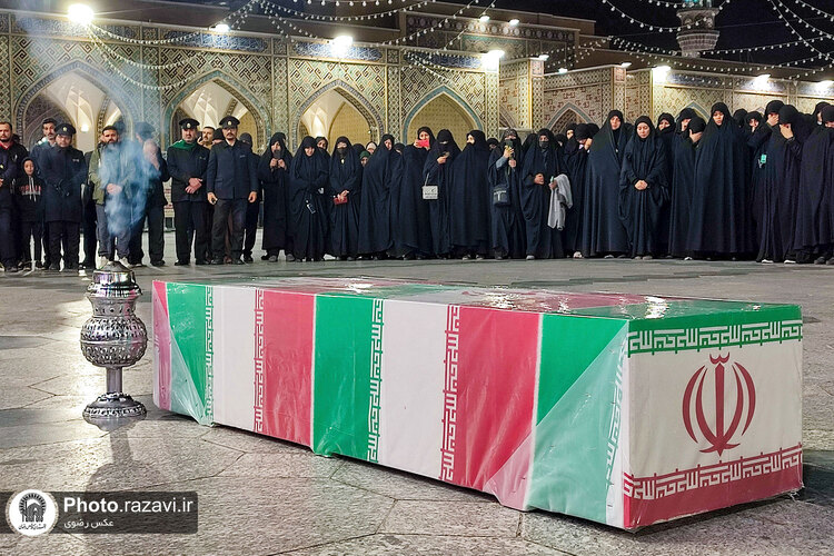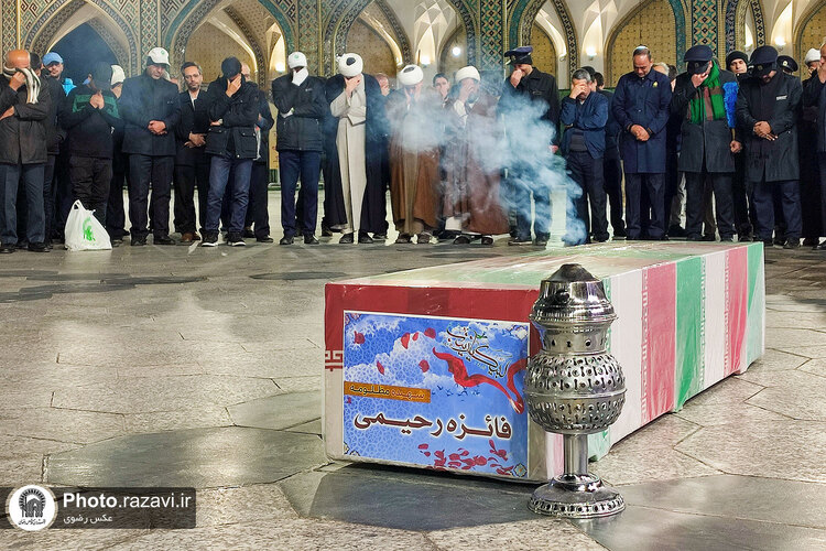 اقامه نماز بر پیکر شهیده حادثه تروریستی کرمان «فائزه رحیمی» در حرم مطهر رضوی