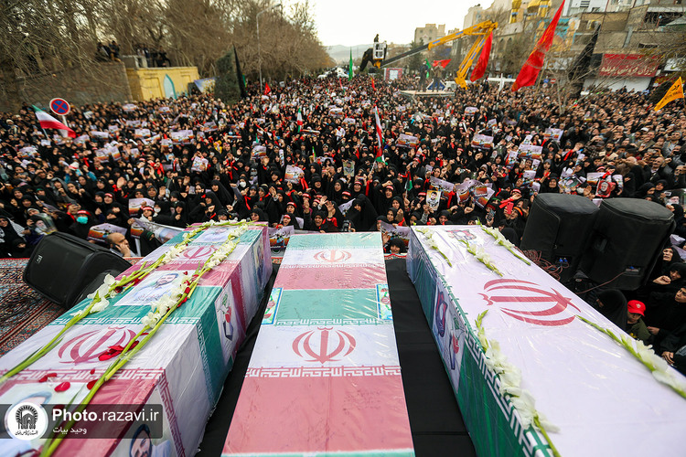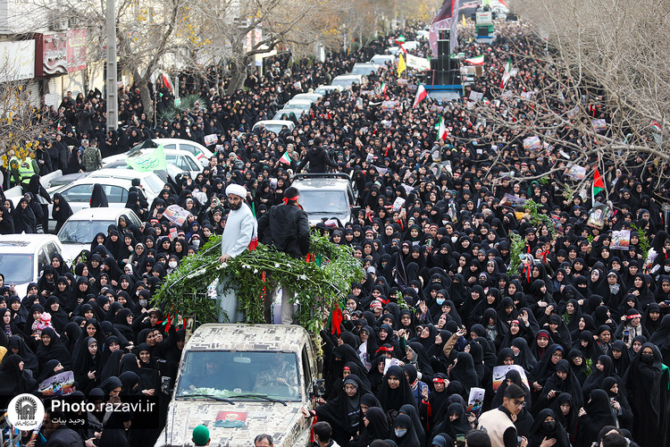 مراسم تشیع پیکرهای مطهر شهیده مریم قوچانی غروی و شهید عادل رضایی از شهدای حادثه تروریستی کرمان و شهید جواد ایزدی از شهدای دفاع مقدس روز شنبه ١۶ دی ١۴٠٢ با حضور مردم شهیدپرور مشهد از خیابان امامت مشهد و در جوار مرقد شهدای گمنام دفاع مقدس برگزار شد.