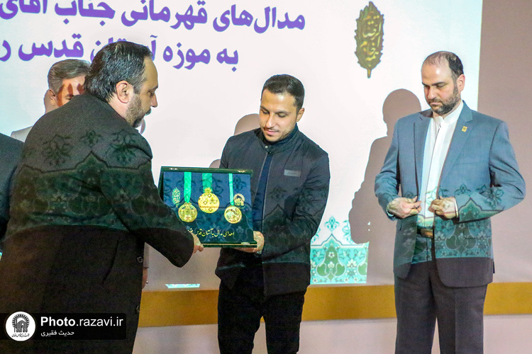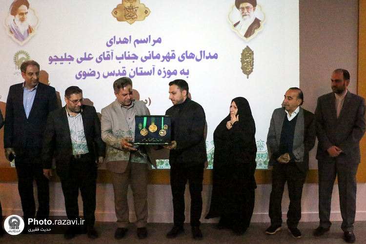 مراسم اهدای مدال‌های قهرمانی علی جلیجو، کشتی‌گیر و ورزش‌کار ورزش‌های باستانی به موزه آستان قدس رضوی روز پنج‌شنبه 21 دی 1402 در مرکز همایش‌ها و نمایشگاه‌های آستان قدس رضوی برگزار شد.