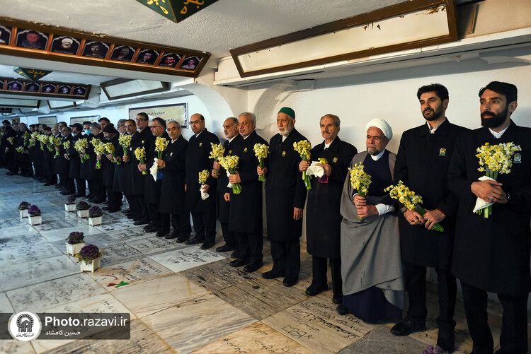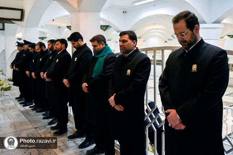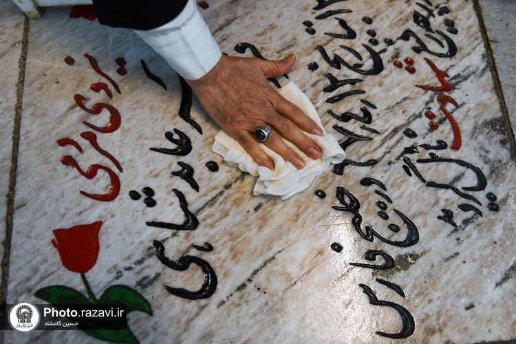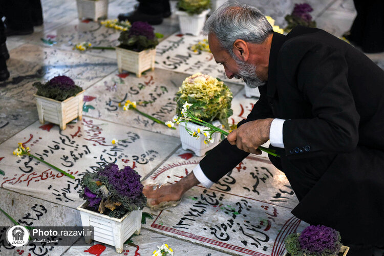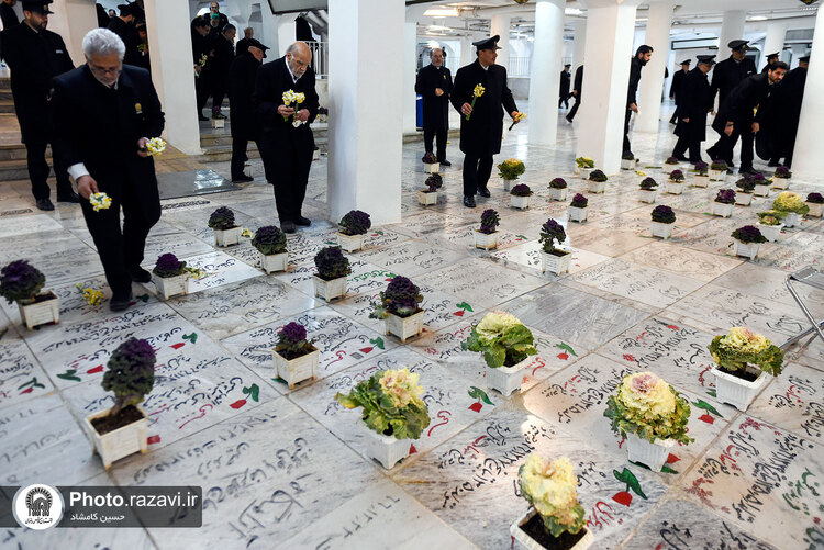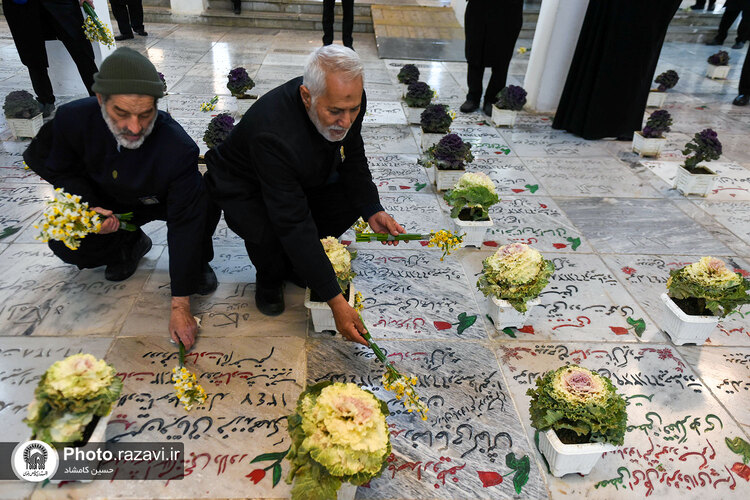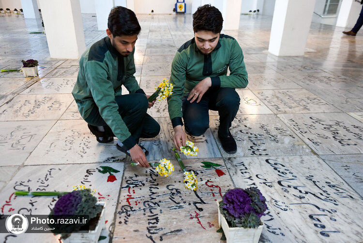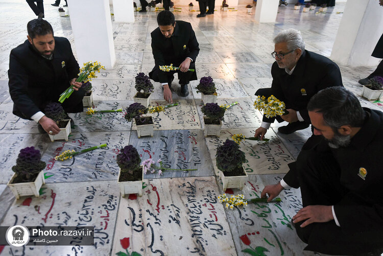 مراسم غبارروبی گلزار شهدای مدفون در حرم مطهر رضوی، همزمان با آغاز دهه فجر روز پنجشنبه 12 بهمن 1402 به همت خدمه و خادمیاران بارگاه منور رضوی در بهشت ثامن حرم امام رضا علیهالسلام برگزار شد.