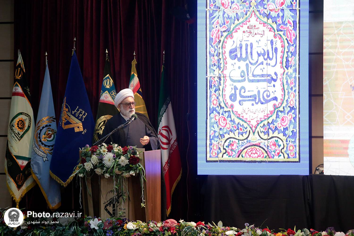 تولیت آستان قدس رضوی با بیان اینکه معجزه پیامبر اکرم(ص) در دوران معاصر در انقلاب اسلامی قابل مشاهده است، آیه شریفه «قُلْ إِنَّما أَعِظُکُمْ بِواحِدَة أَنْ تَقُومُوا لِلّهِ مَثْنى وَ فُرادى، شما را تنها به یک چیز اندرز مى دهم، دو نفر دو نفر یا به تنهایى براى خدا قیام کنید.» را الهام بخش نهضت و انقلاب اسلامی معرفی و خاطرنشان کرد: امام خمینی(ره) انقلاب شکوهمند اسلامی با همه برکات و اثرگذاری جهانیاش را از این آیه شریفه قرآن الهام گرفتند و آغاز کردند.