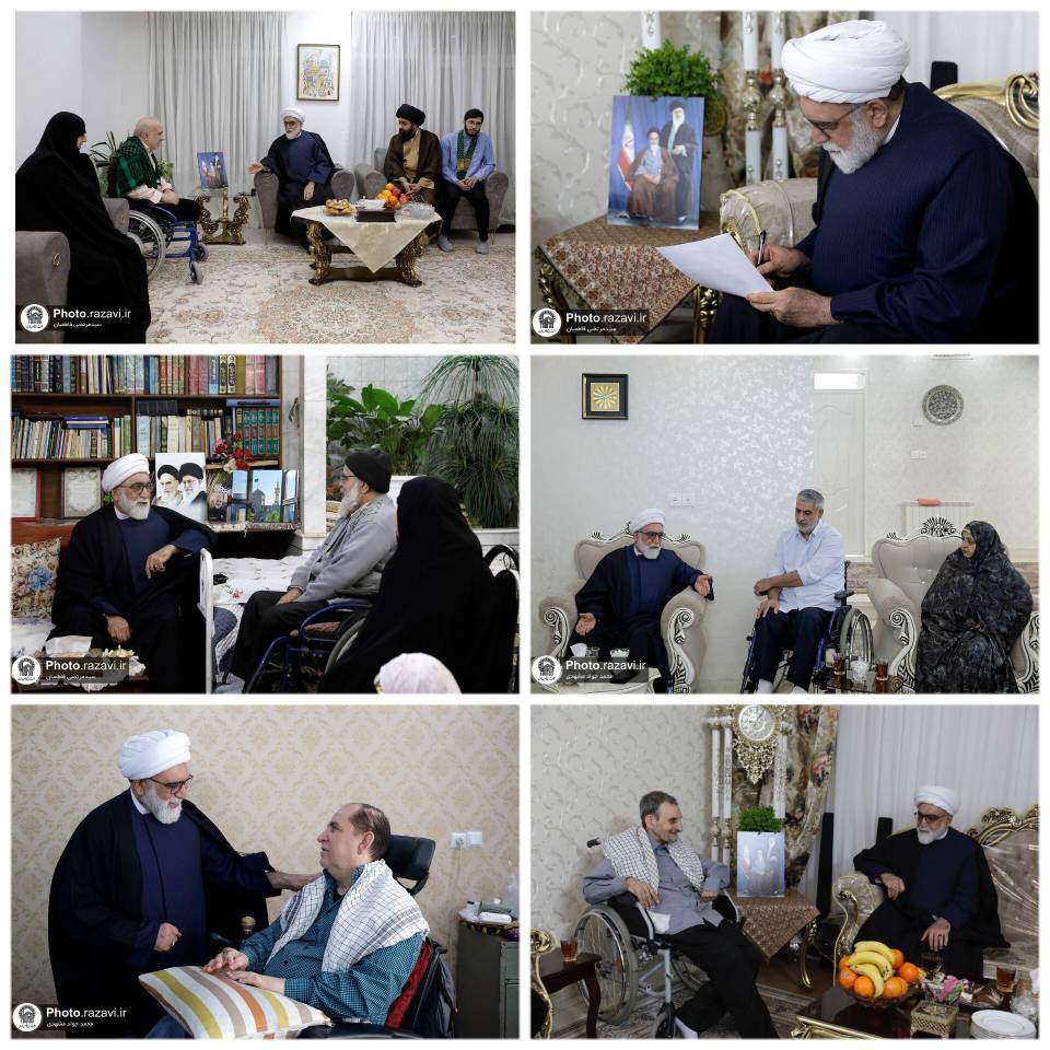 برای نمایش آرشیو پخش زنده کلیک کنیدبه گزارش آستان نیوز، حجت الاسلام والمسلمین احمد مروی عصر پنجشنبه 26 بهمن ماه به مناسب سالروز ولادت حضرت ابالفضل العباس(ع) و روز جانباز، در منزل جانبازان «سید حسین حسینی نژاد»، «قدیر نعمتی گل»، «محمد بلندی»، «سید محمد خلیلی» و «محمد ندایی» حضور یافت و ضمن تکریم آنان، ایثار و فداکاری این جانبازان سرافراز و خانوادههای ایشان را ستود.