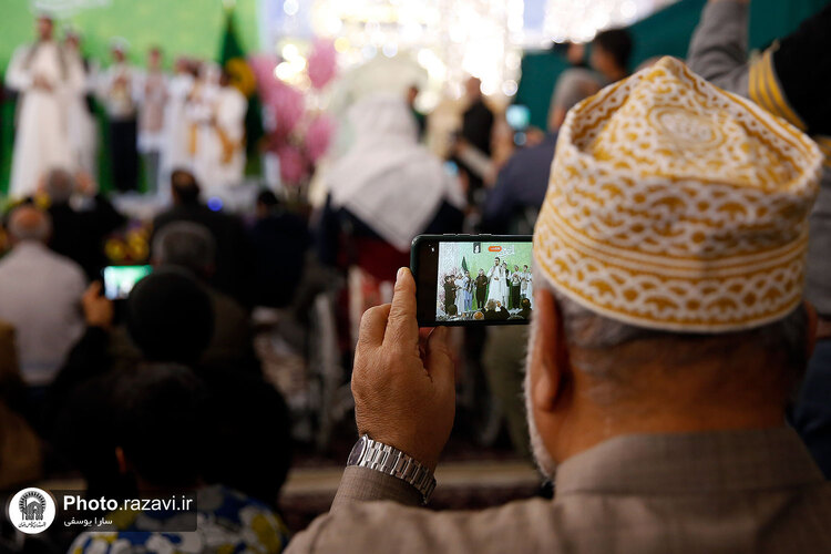 مراسم جشن شب نیمه شعبان ویژه زائران غیر ایرانی شامگاه شنبه 5 اسفند 1402 در رواق دارالمرحمه حرم مطهر رضوی برگزار شد.