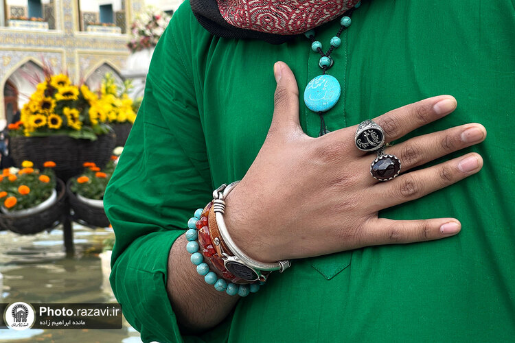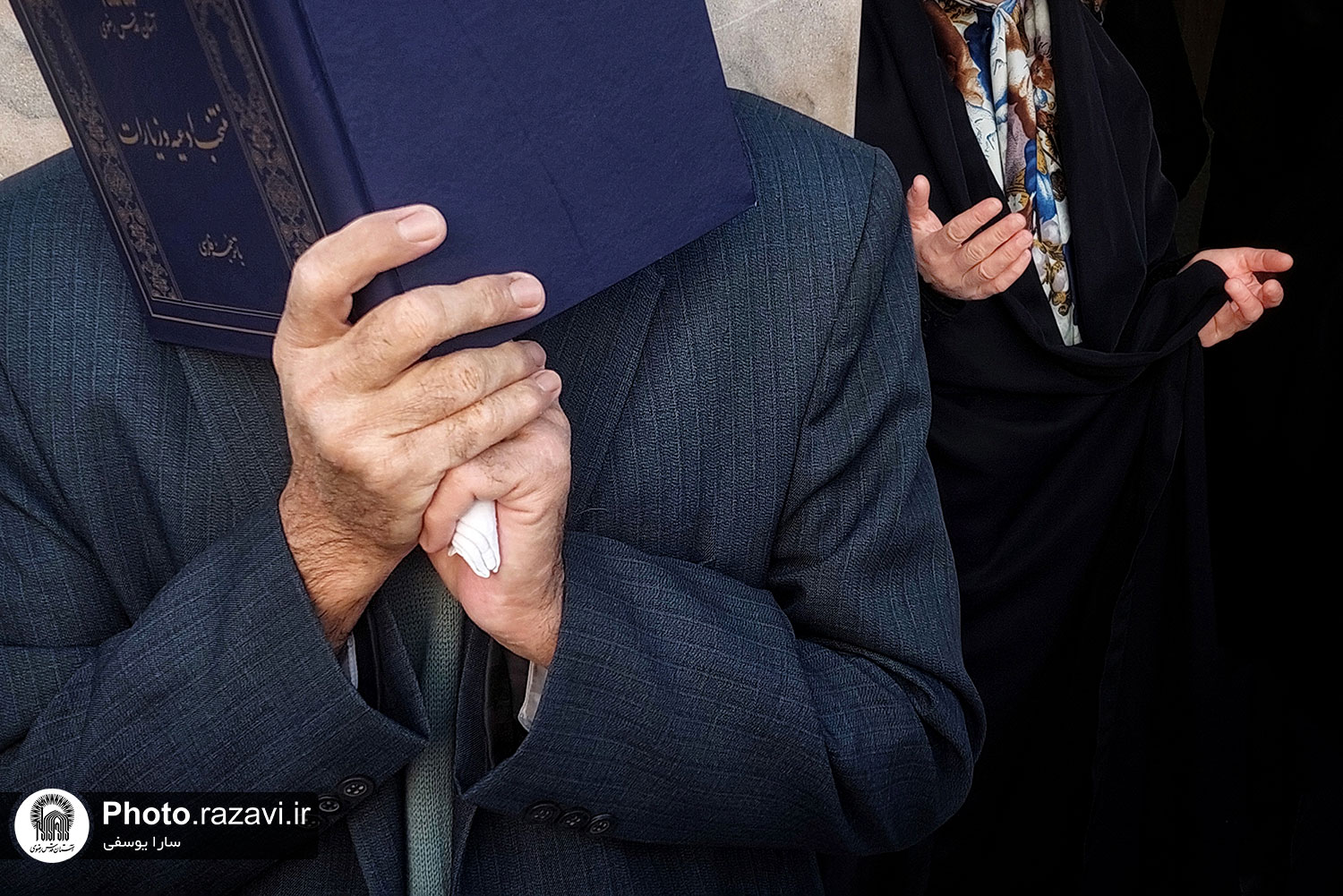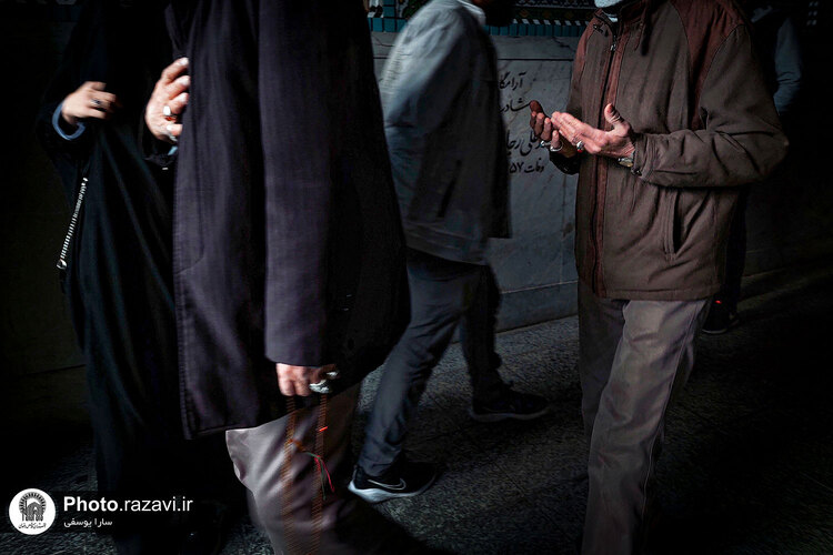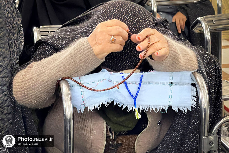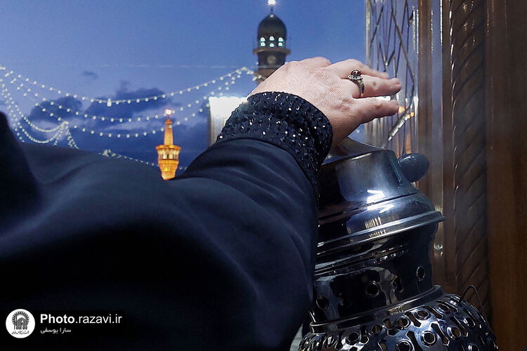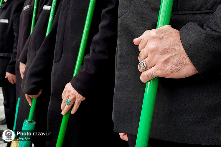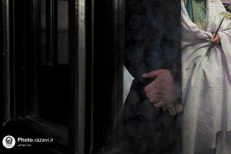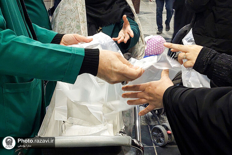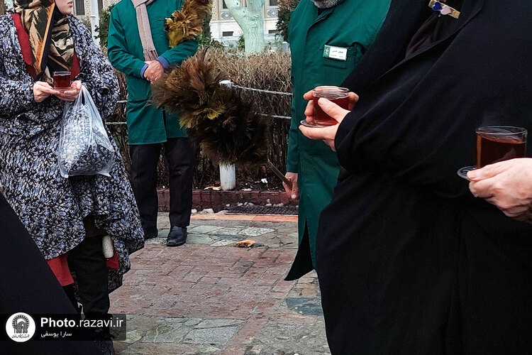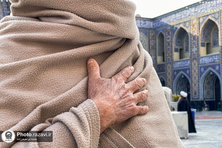 خادمی به زوار علی ابن موسی الرضا خدمت میکند تا مولا در جهان دگر دستانش را بگیرد.