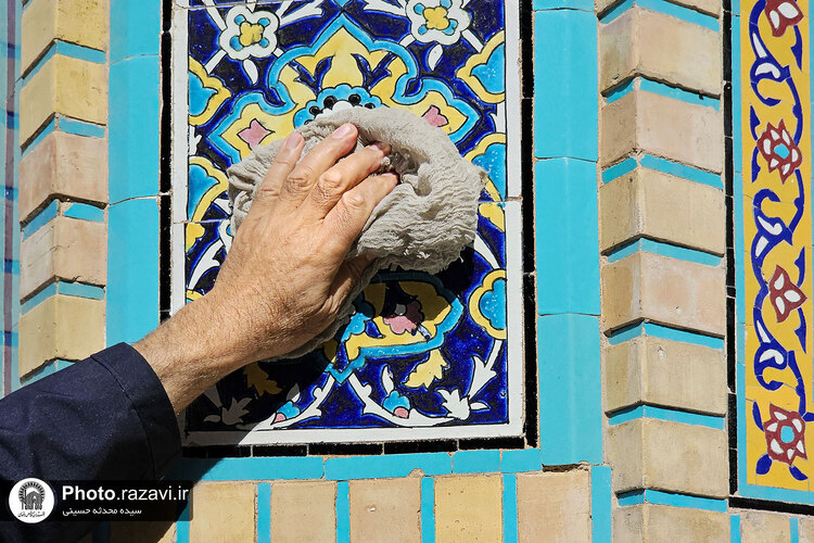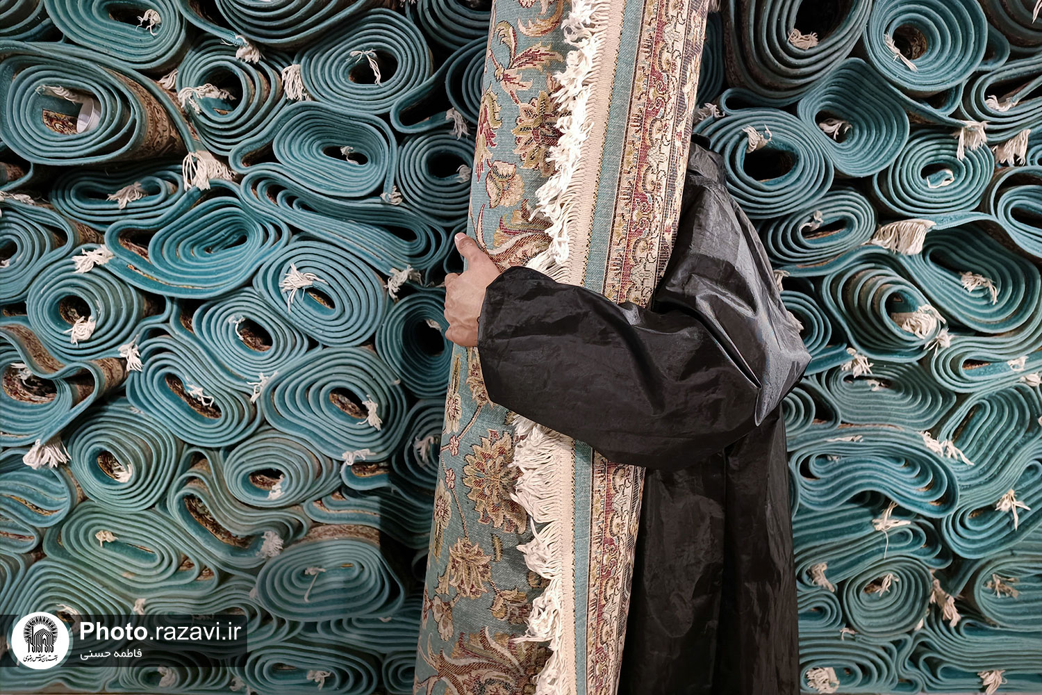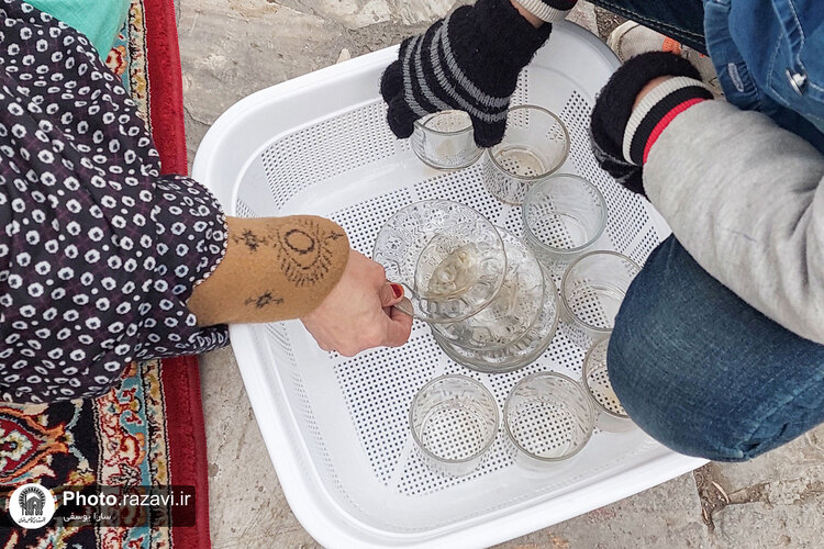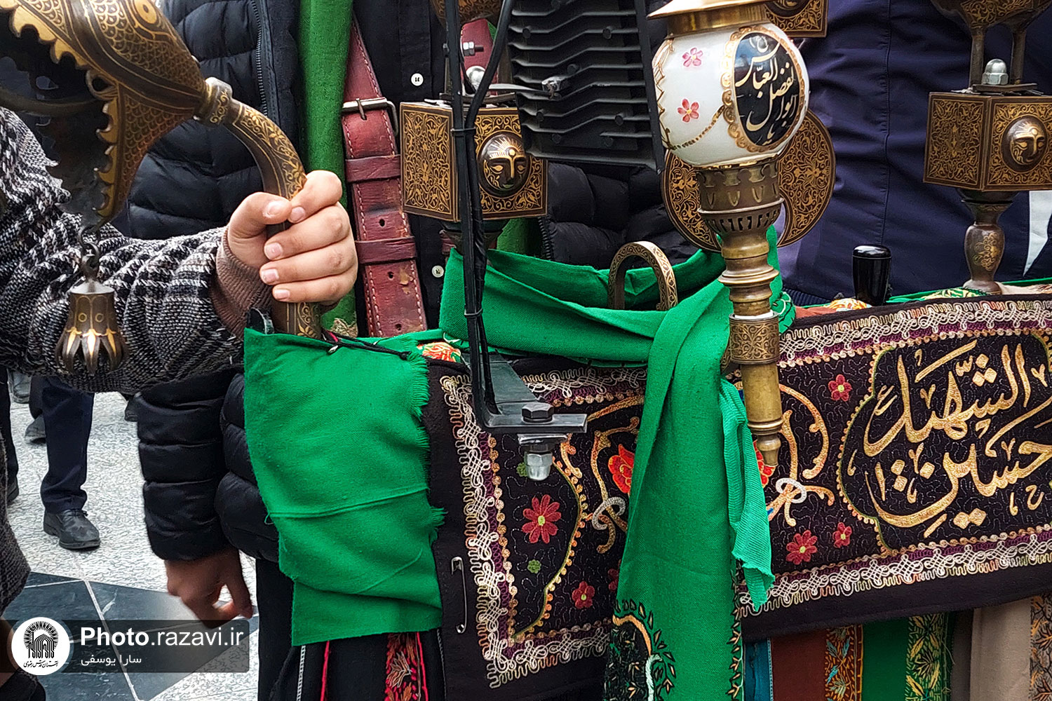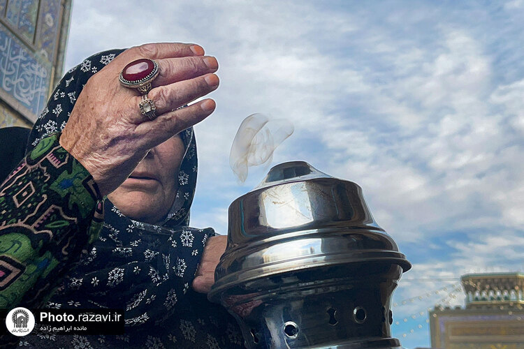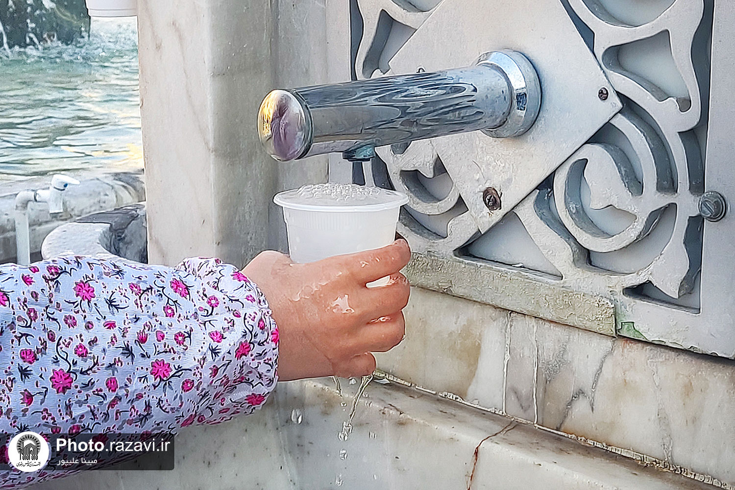 خادمی به زوار علی ابن موسی الرضا خدمت میکند تا مولا در جهان دگر دستانش را بگیرد.