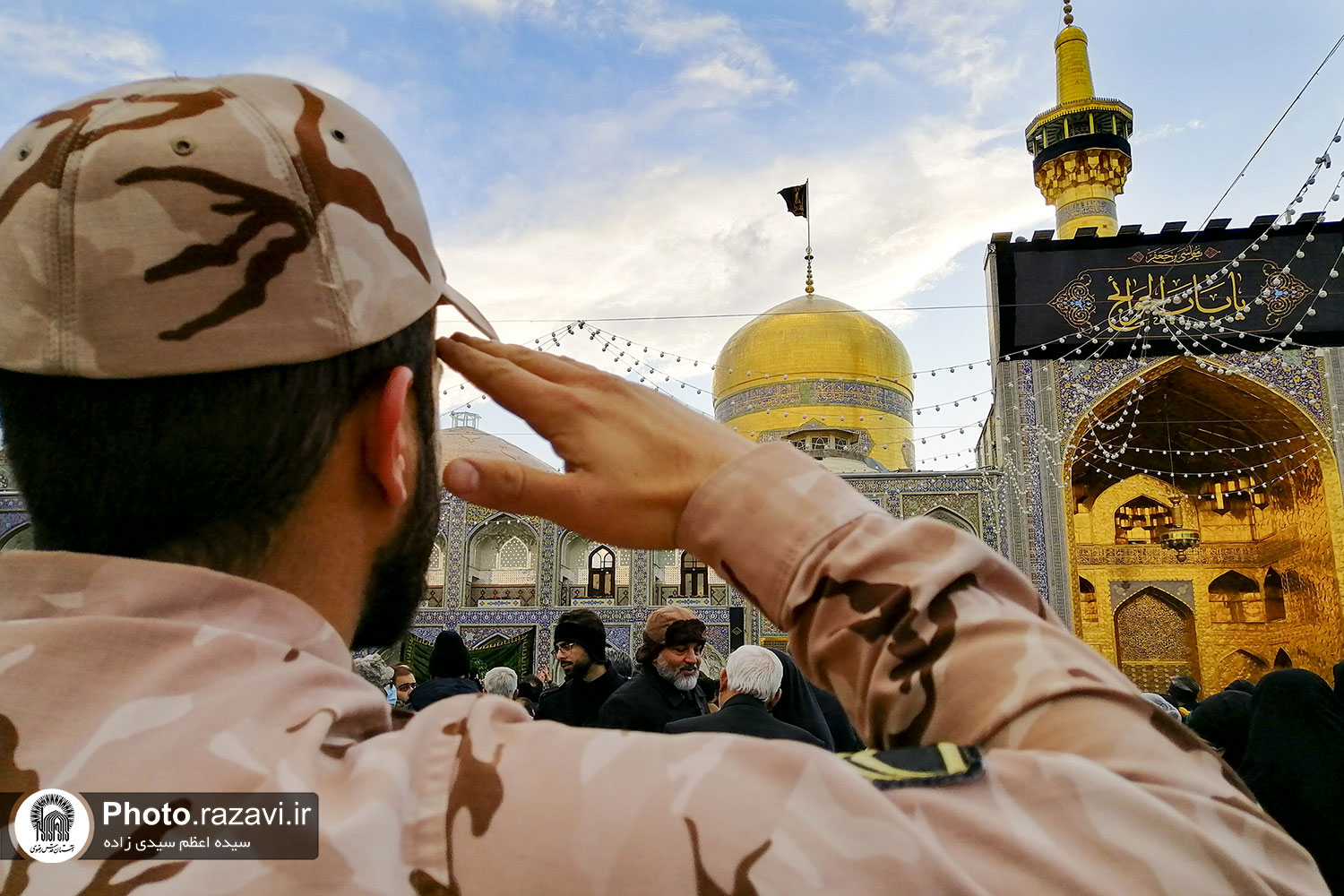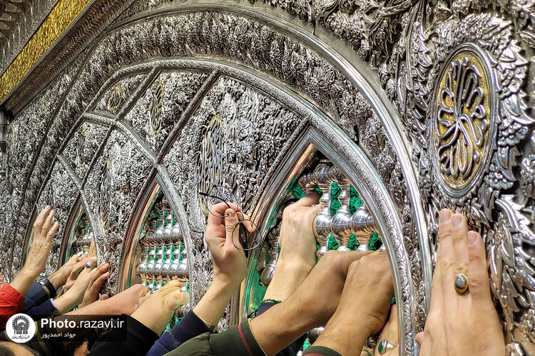 دستی بر روی سینه قرار میگیرد و بعد از سلام دادن به محضر غریب طوس وارد میشود.
