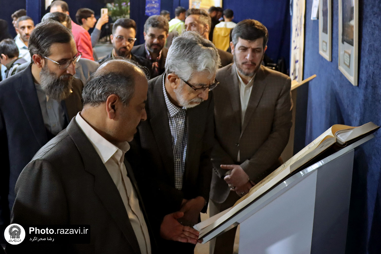 غلامعلی حداد عادل؛ عضو مجمع تشخیص مصلحت نظام و رئیس فرهنگستان زبان و ادب فارسی جمهوری اسلامی ایران به همراه عبدالحمید طالبی؛ رئیس سازمان علمی و فرهنگی آستان قدس رضوی از نمایشگاه مفهومی قرآن کریم با عنوان «بهار حرم؛ بهار زندگی» بازدید کرد.