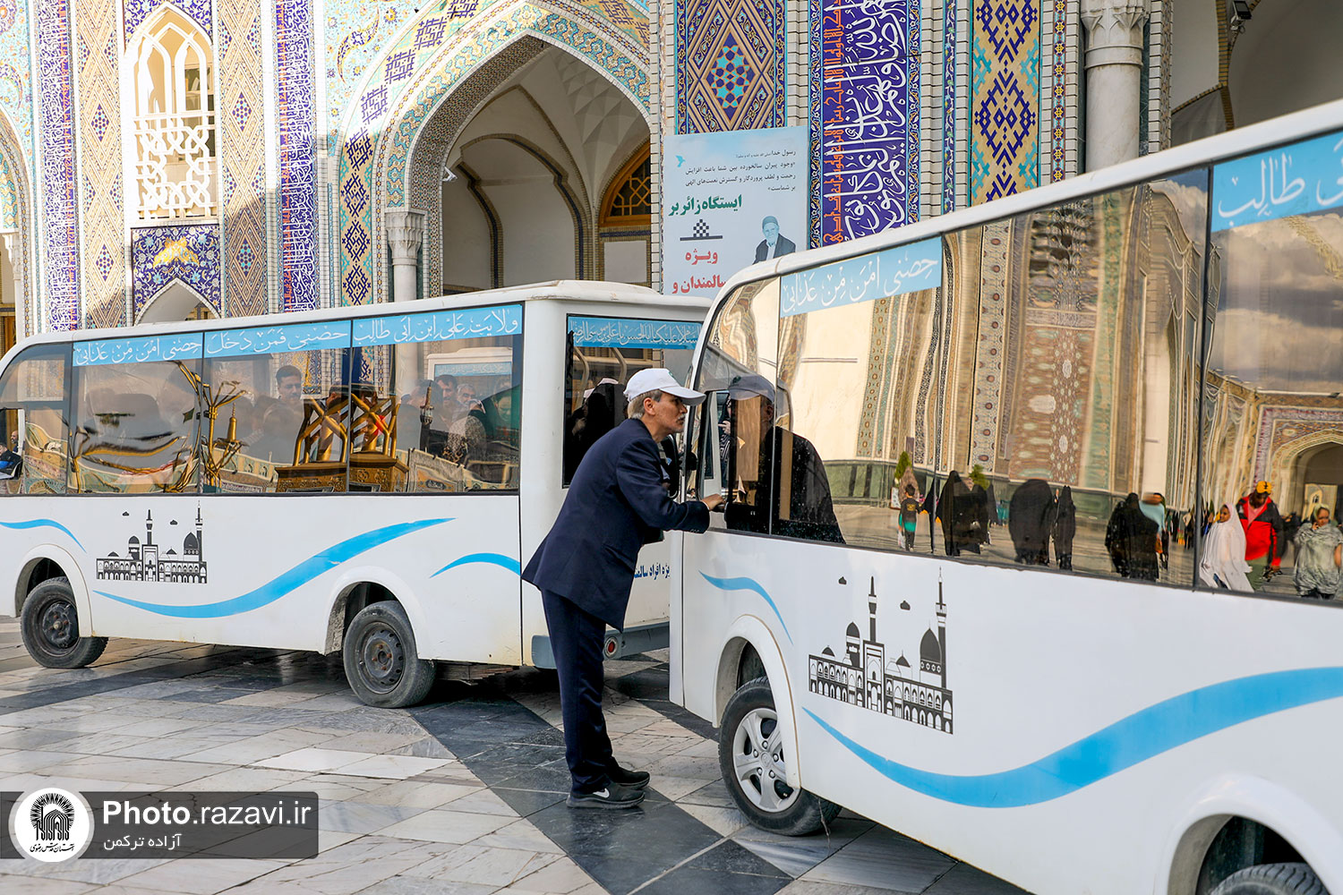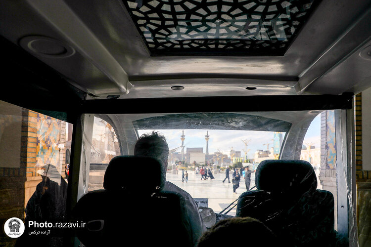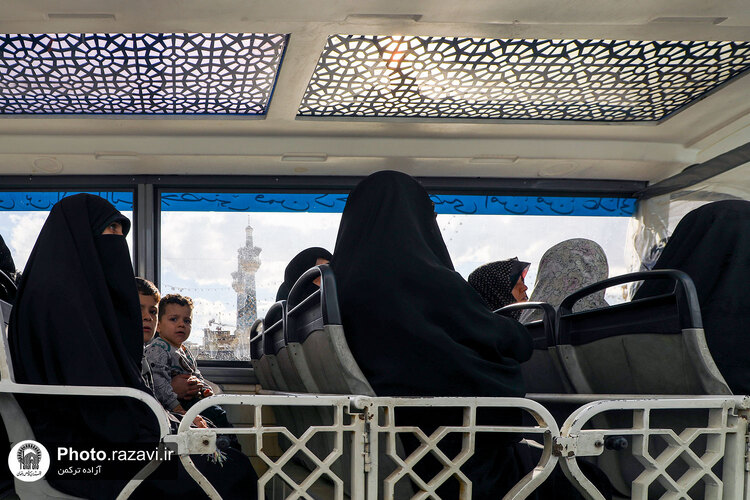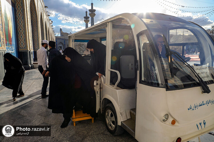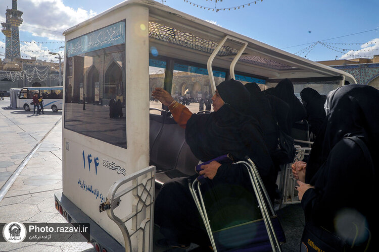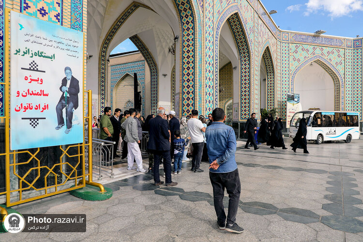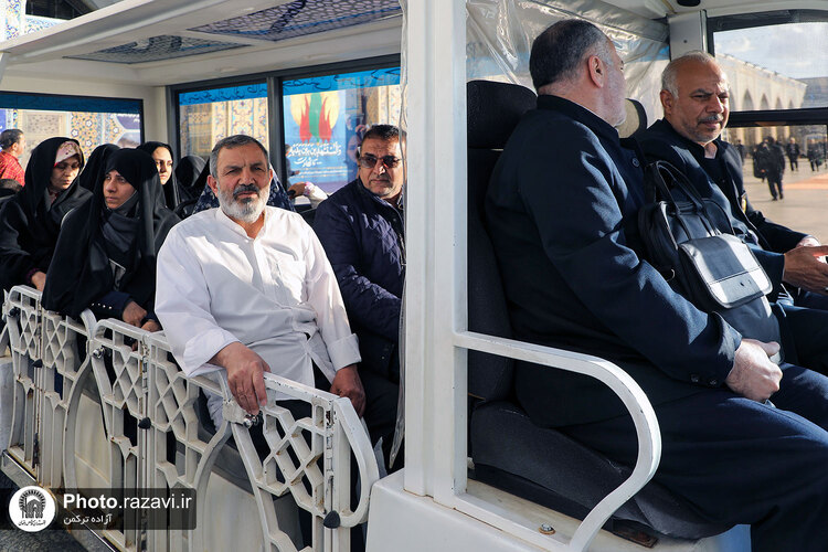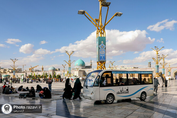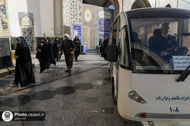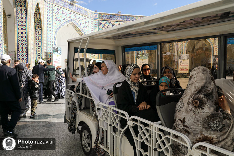 زیر آفتاب نیمهسوز یا در سرمای استخوانسوز و یا زیر باران رحمت الهی، زائر سالمند، جوانی معلول یا مادری همراه با کودک خردسال خود همگی منتظرند و به صف ایستادهاند تا با رسیدن یک زائربر یا همان اتوبوسهای کوچک برقی سفید رنگ، سوار شده و ماشین با ذکر صلواتی به راه میافتد و ماشین زائربر بعدی میرسد و مسافران پیاپی به سوی زیارت میشتابند.