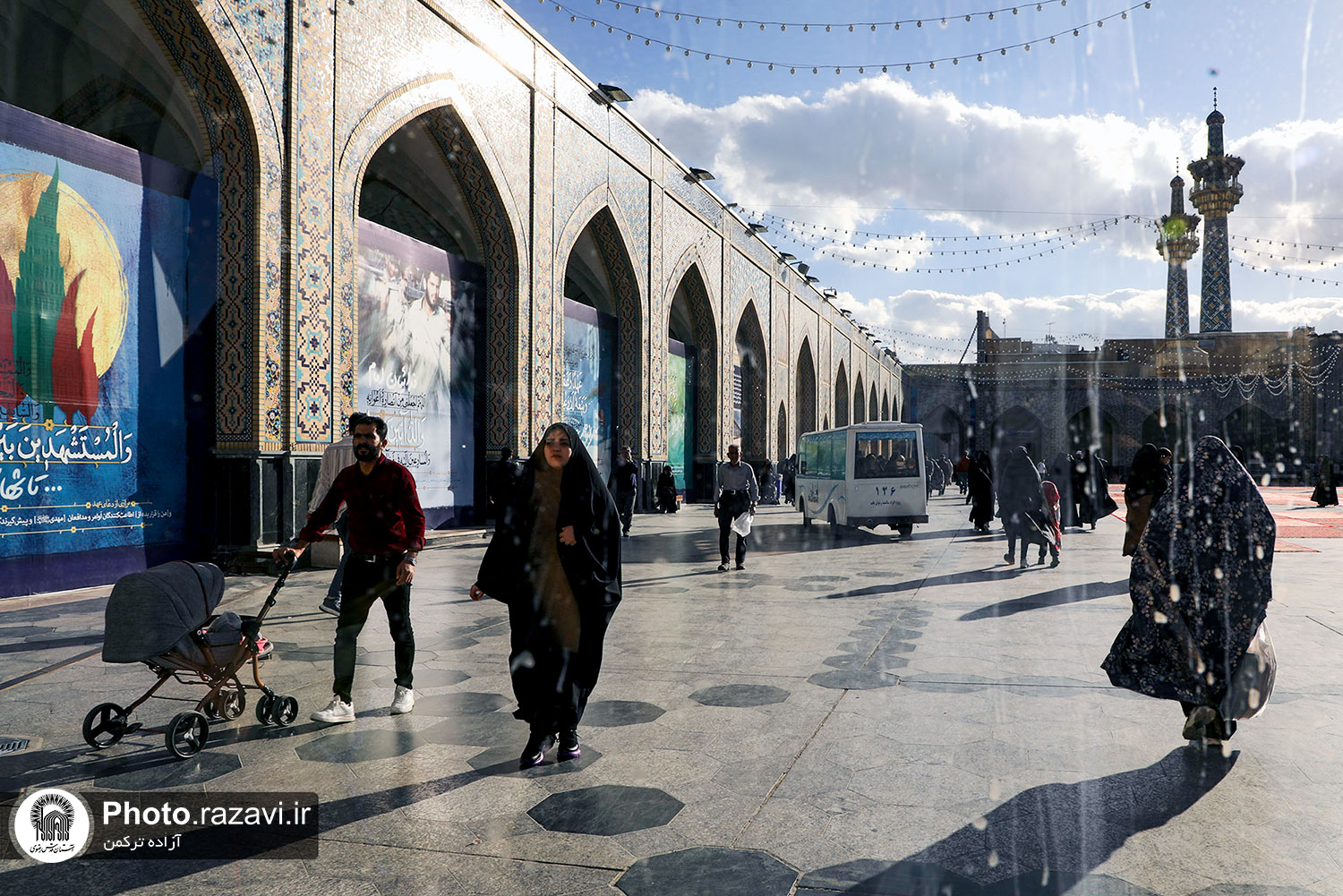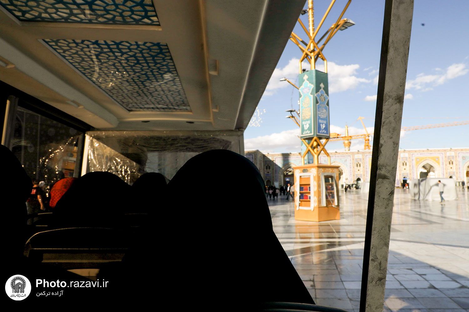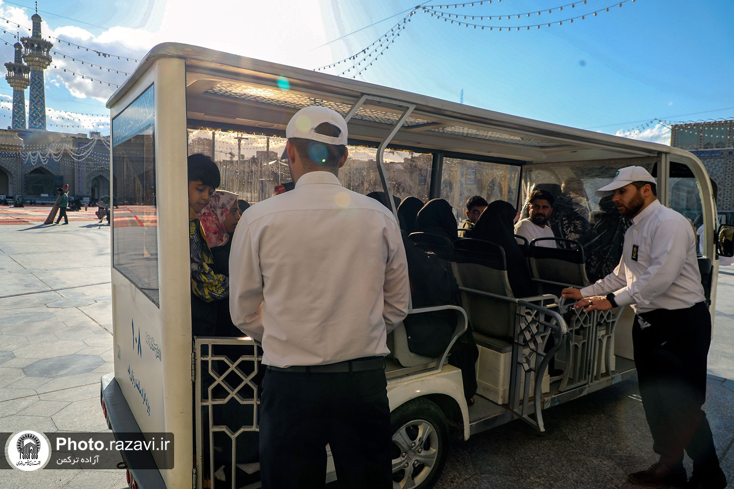 زیر آفتاب نیمهسوز یا در سرمای استخوانسوز و یا زیر باران رحمت الهی، زائر سالمند، جوانی معلول یا مادری همراه با کودک خردسال خود همگی منتظرند و به صف ایستادهاند تا با رسیدن یک زائربر یا همان اتوبوسهای کوچک برقی سفید رنگ، سوار شده و ماشین با ذکر صلواتی به راه میافتد و ماشین زائربر بعدی میرسد و مسافران پیاپی به سوی زیارت میشتابند.
