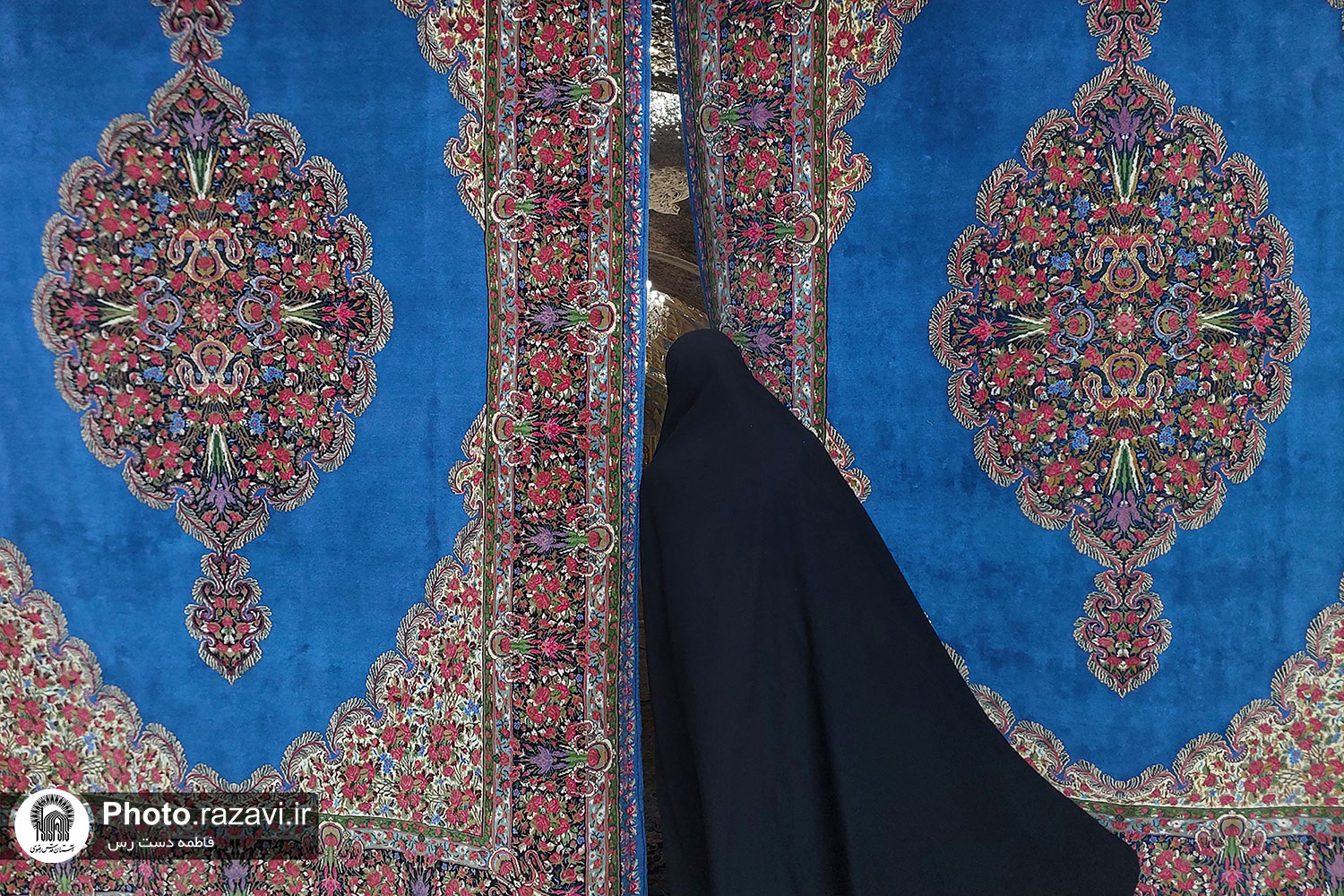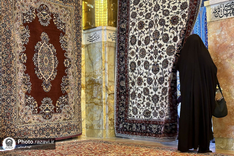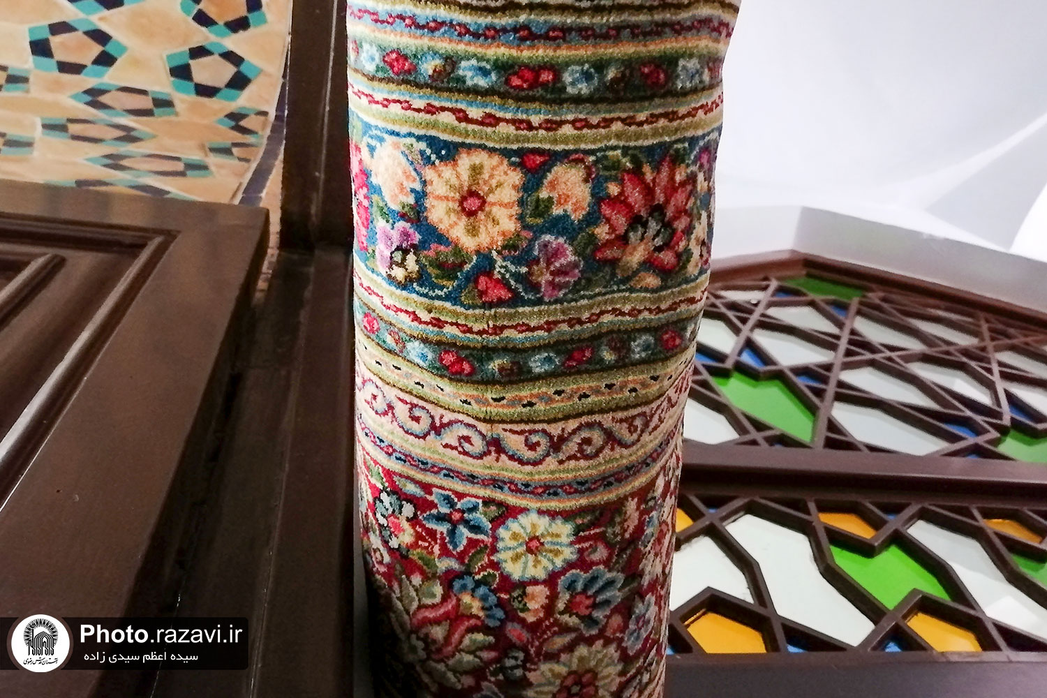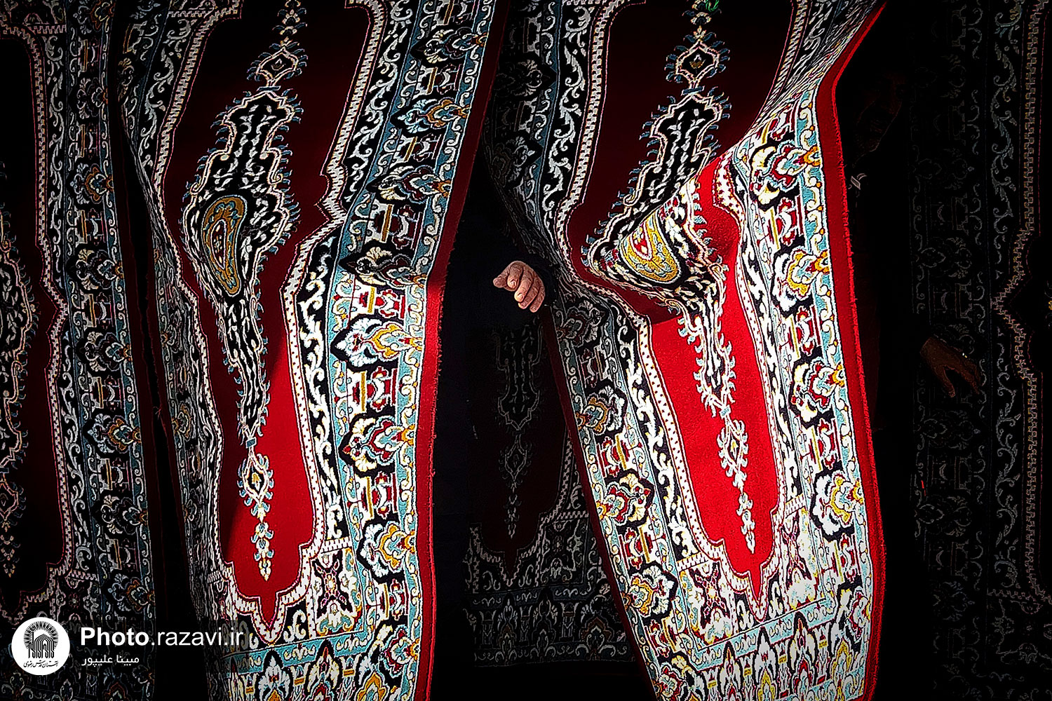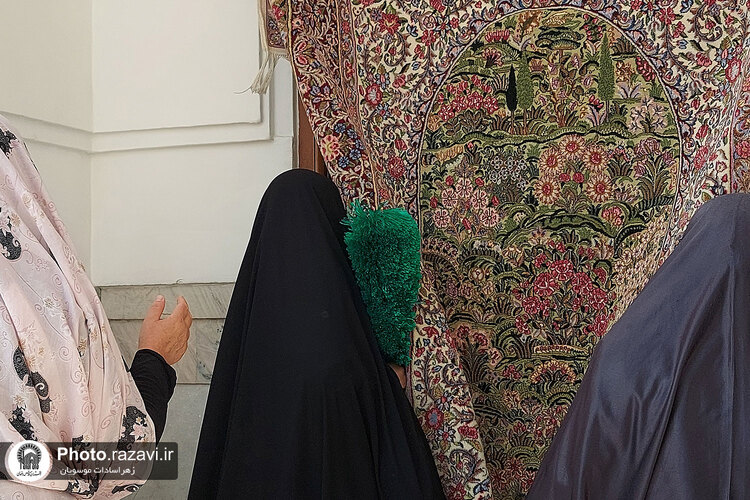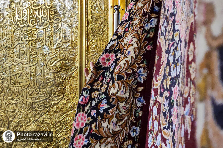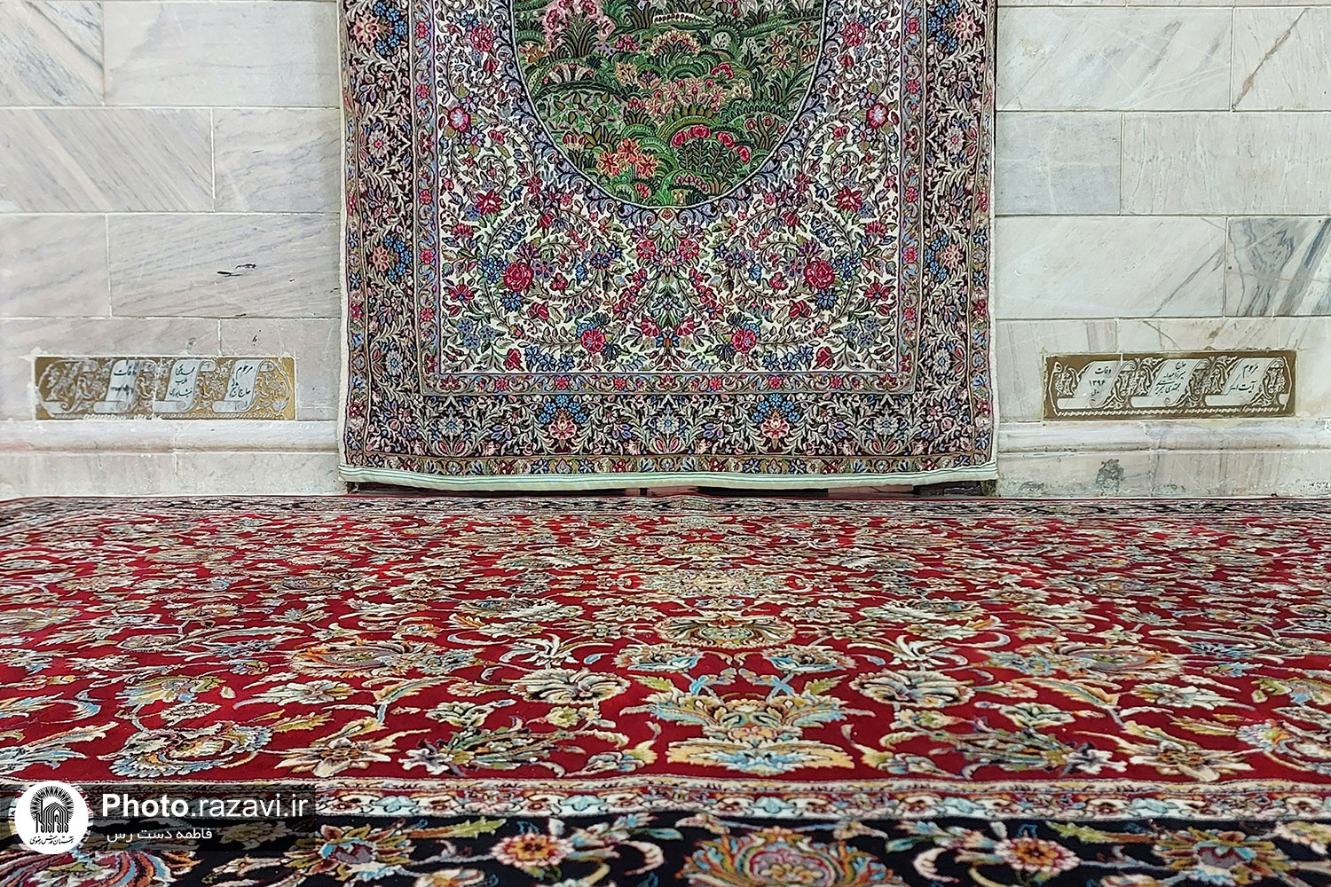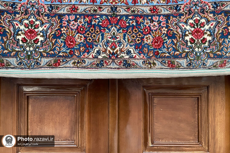 زیر پای زائرها یا آویزان به درگاه‌ها بستگی دارد کجا قسمتش شود. هر زائر که می‌خواهد وارد شود محو نقشه زیبایش می‌شود و دستی به رویش میکشد و داخل میشود. شاید اگر این فرش‌ها را مرز بهشت خواند بیراه نباشد.