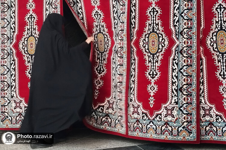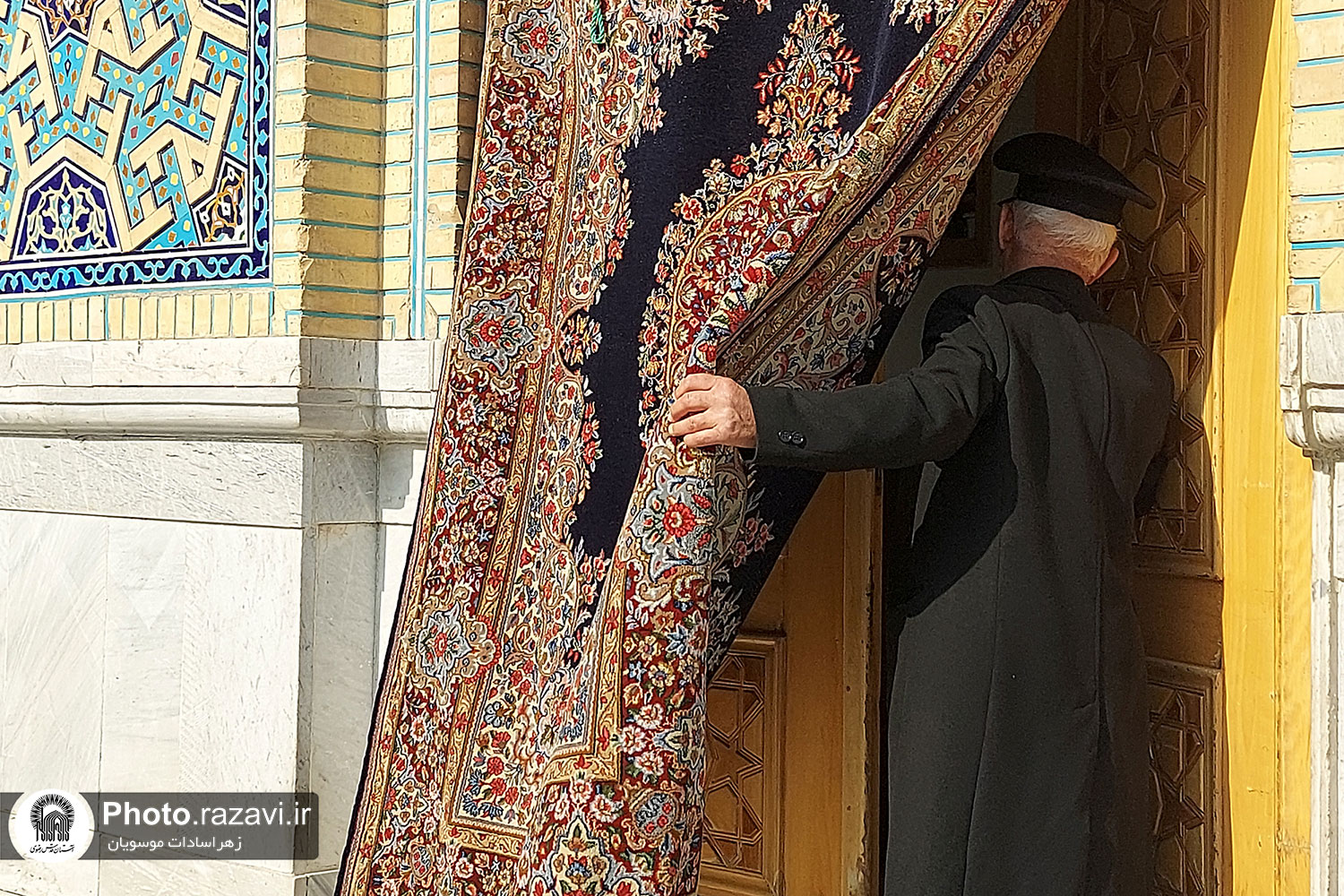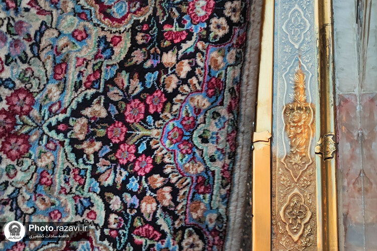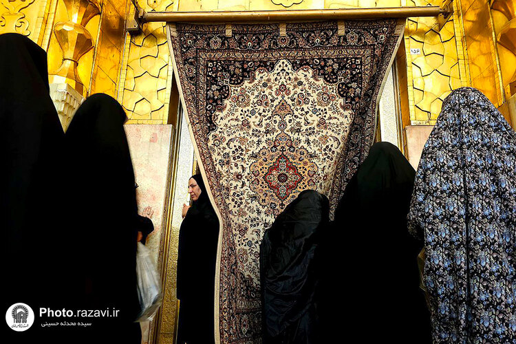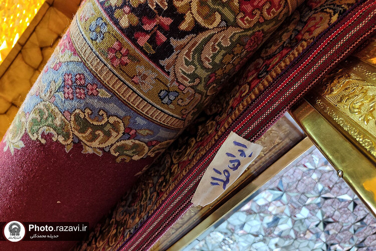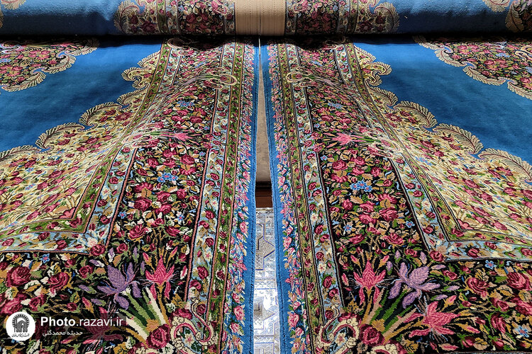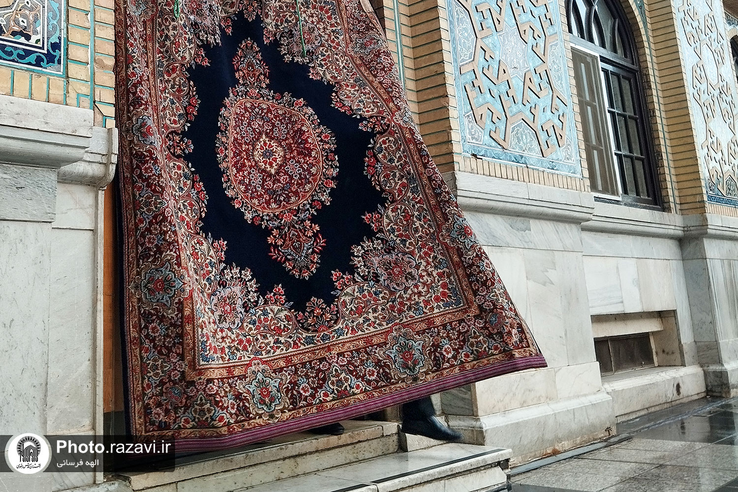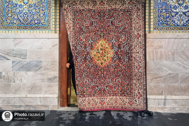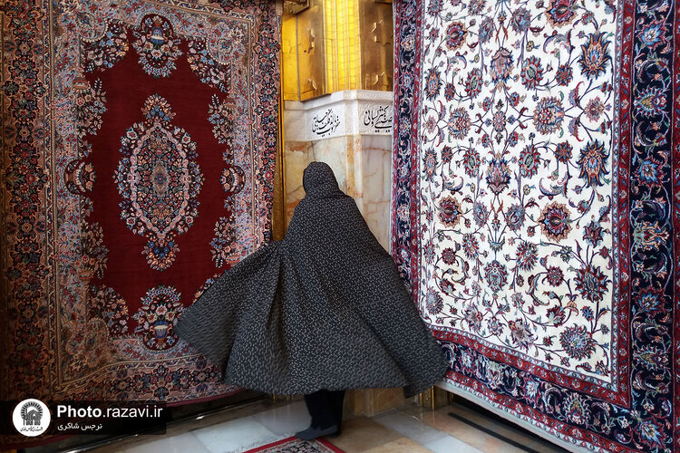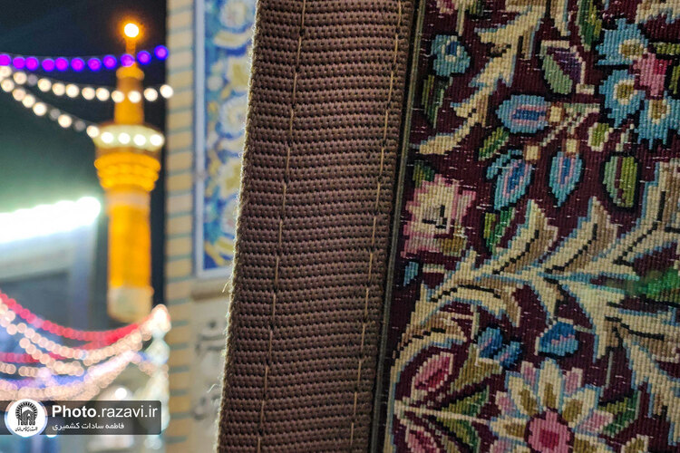 زیر پای زائرها یا آویزان به درگاه‌ها بستگی دارد کجا قسمتش شود. هر زائر که می‌خواهد وارد شود محو نقشه زیبایش می‌شود و دستی به رویش میکشد و داخل میشود. شاید اگر این فرش‌ها را مرز بهشت خواند بیراه نباشد.