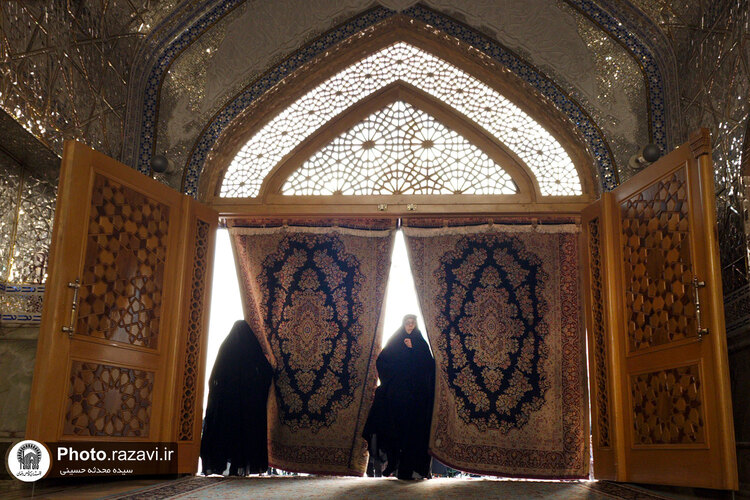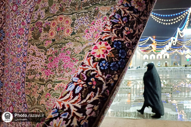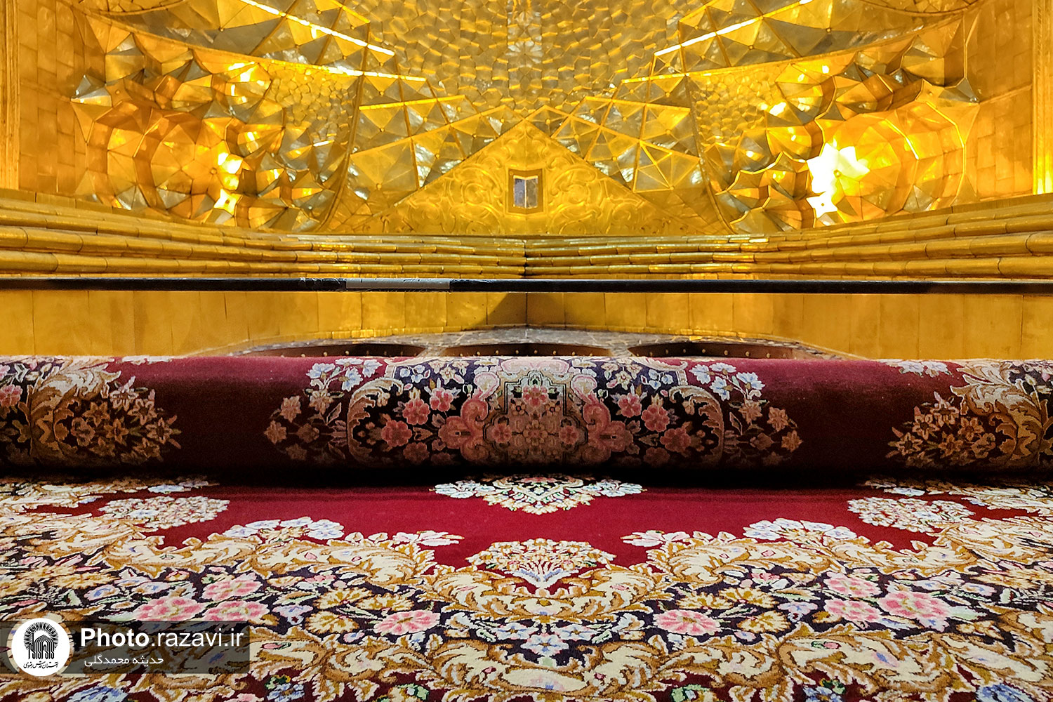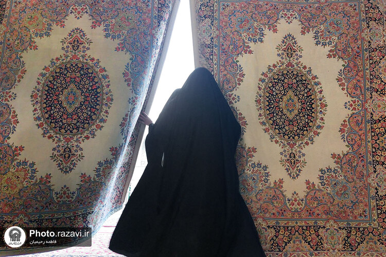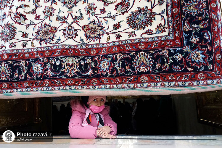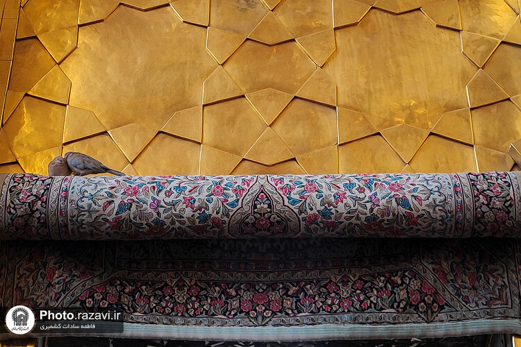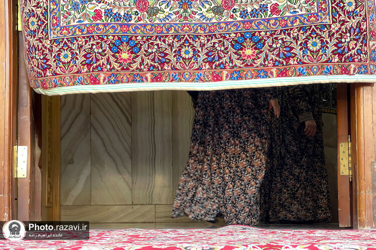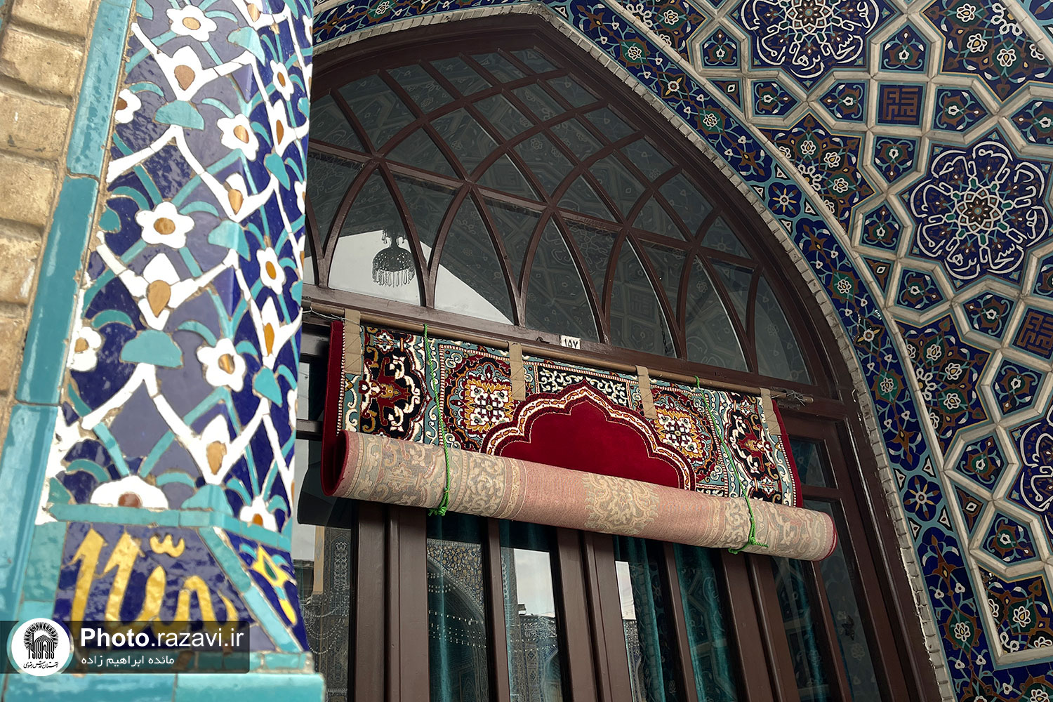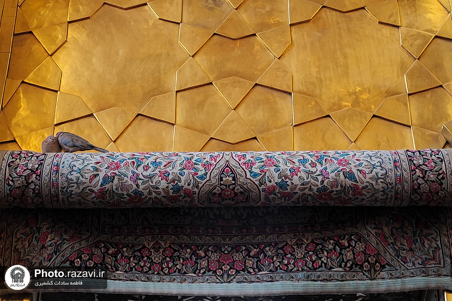 زیر پای زائرها یا آویزان به درگاه‌ها بستگی دارد کجا قسمتش شود. هر زائر که می‌خواهد وارد شود محو نقشه زیبایش می‌شود و دستی به رویش میکشد و داخل میشود. شاید اگر این فرش‌ها را مرز بهشت خواند بیراه نباشد.