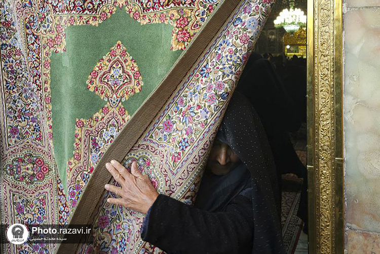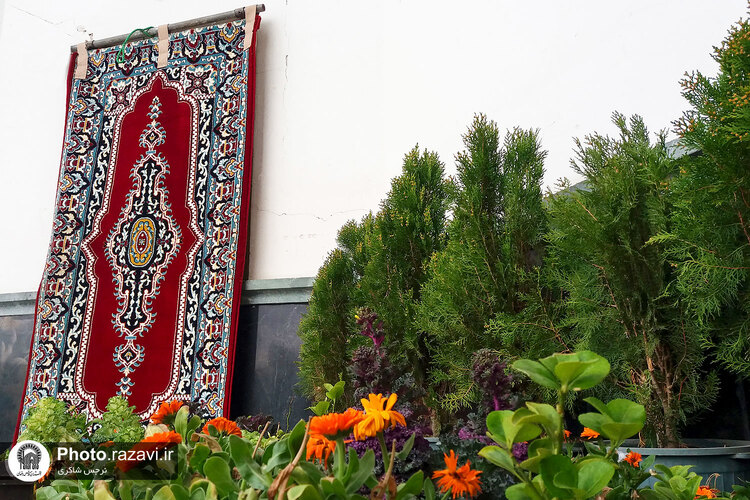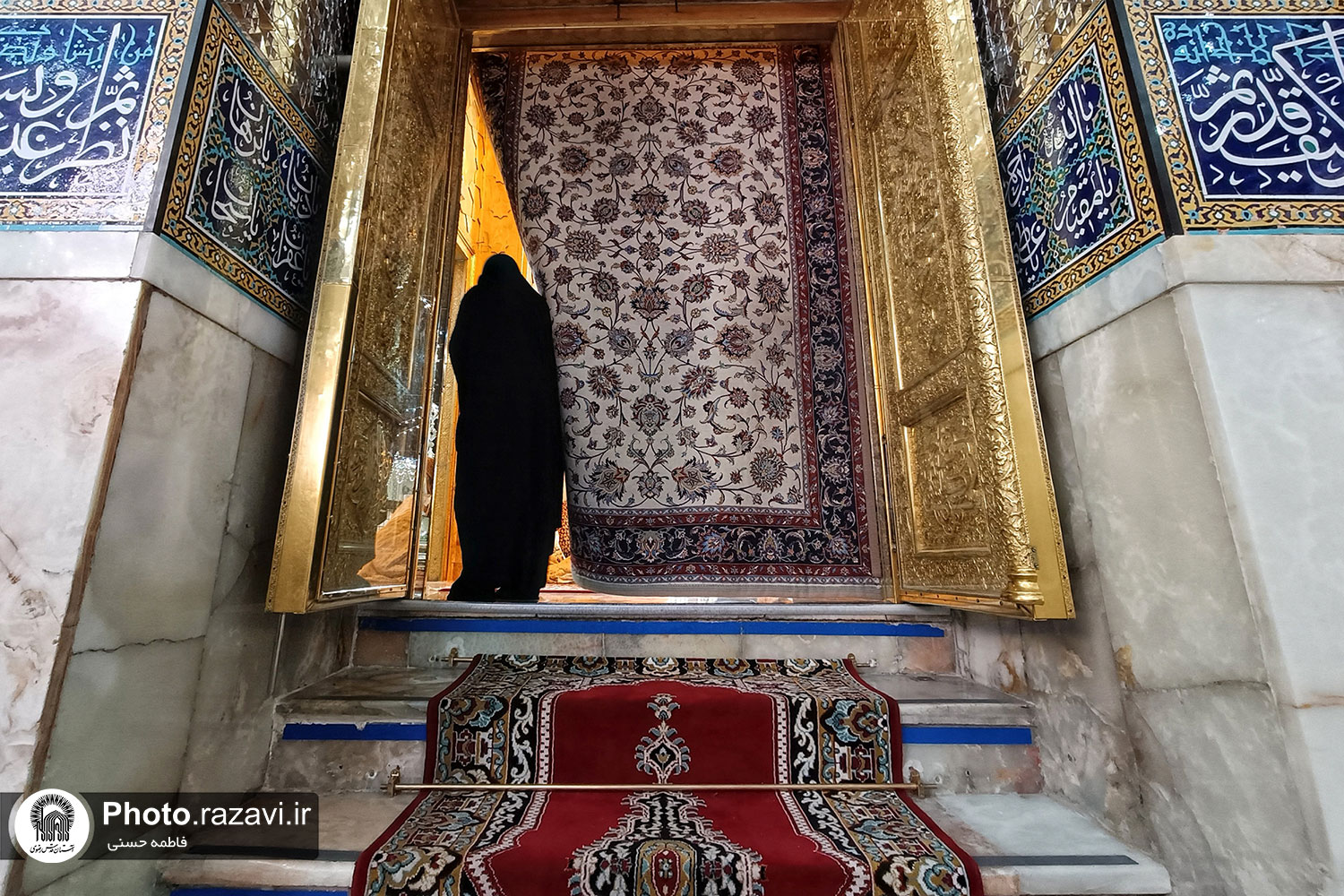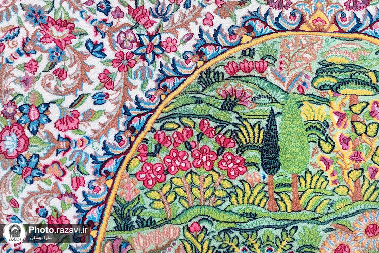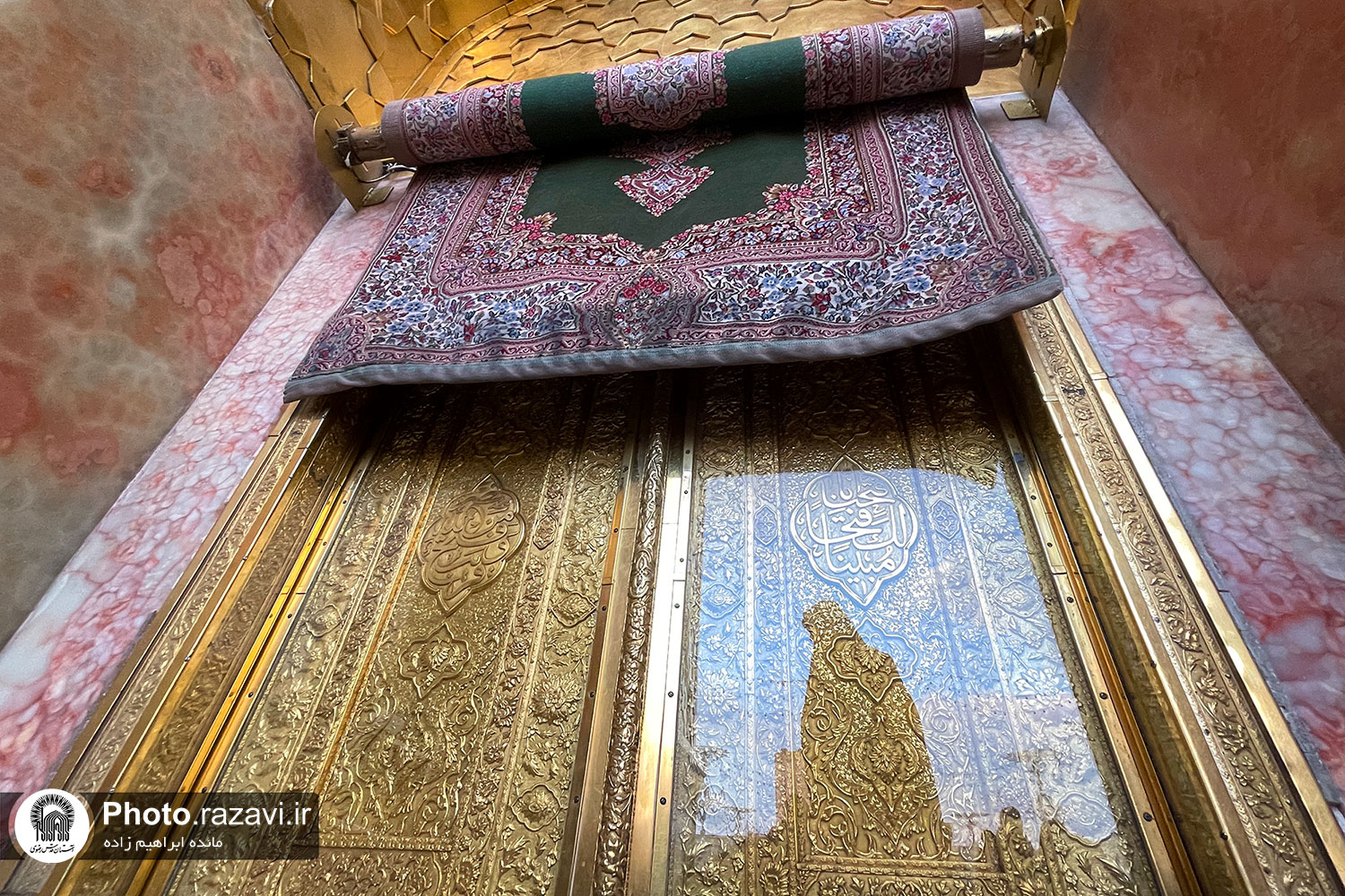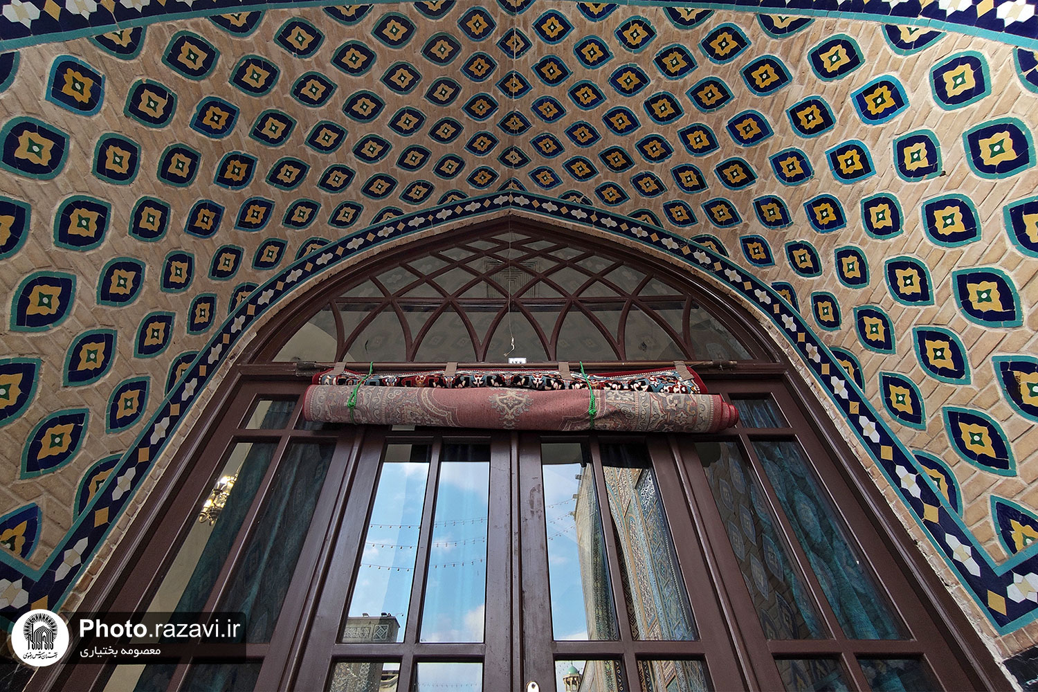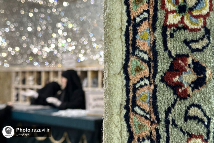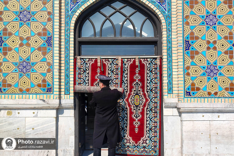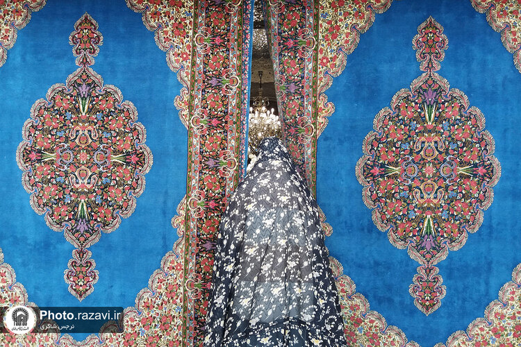 زیر پای زائرها یا آویزان به درگاه‌ها بستگی دارد کجا قسمتش شود. هر زائر که می‌خواهد وارد شود محو نقشه زیبایش می‌شود و دستی به رویش میکشد و داخل میشود. شاید اگر این فرش‌ها را مرز بهشت خواند بیراه نباشد.