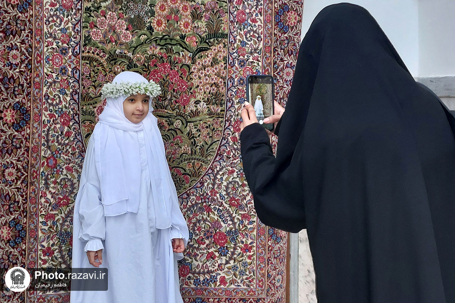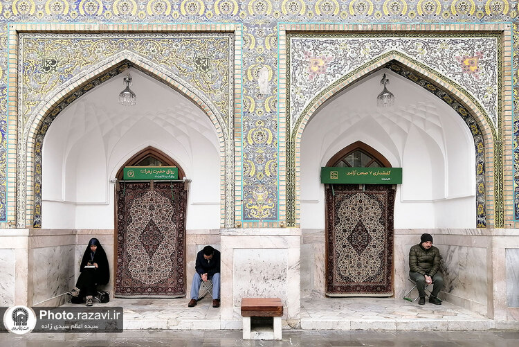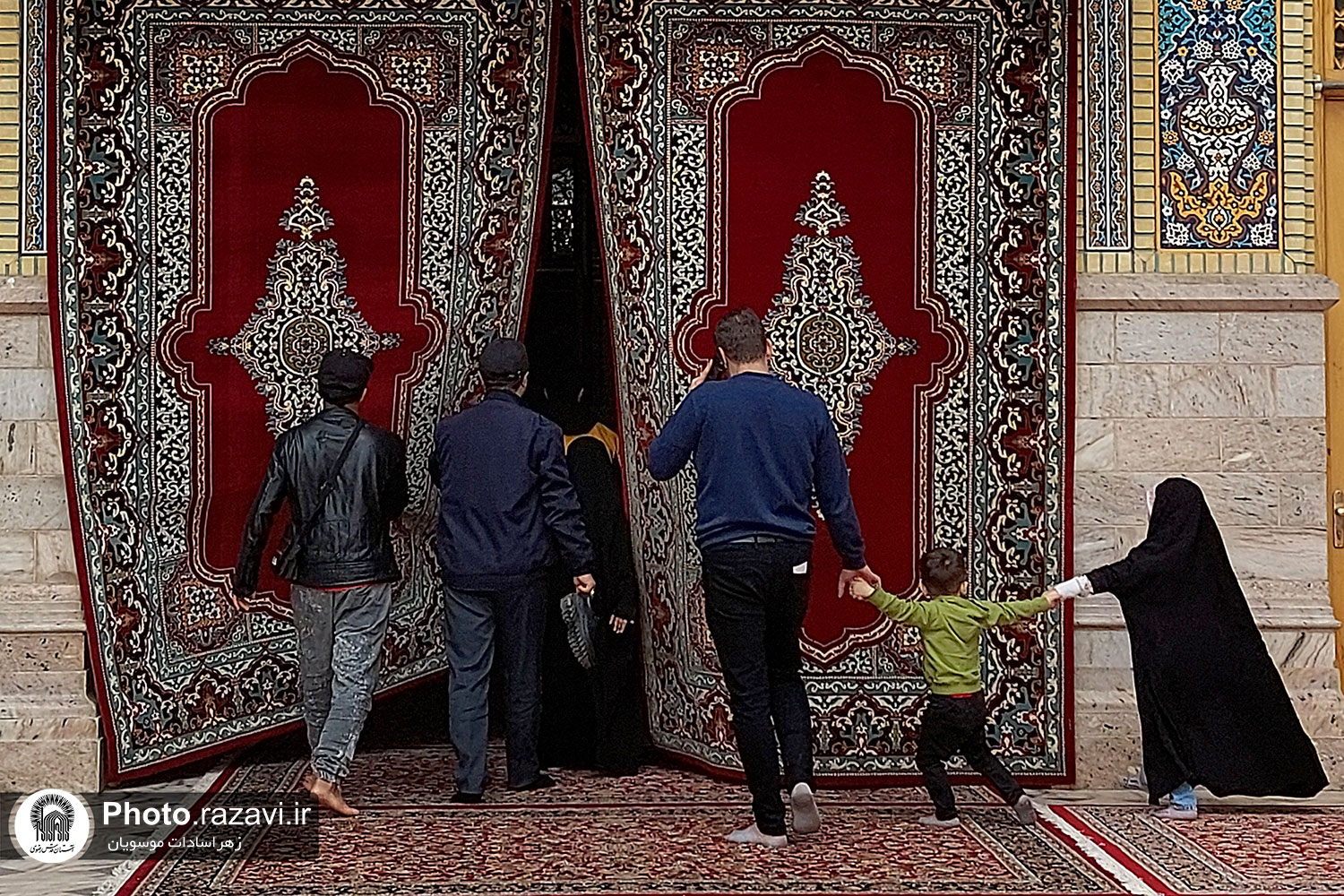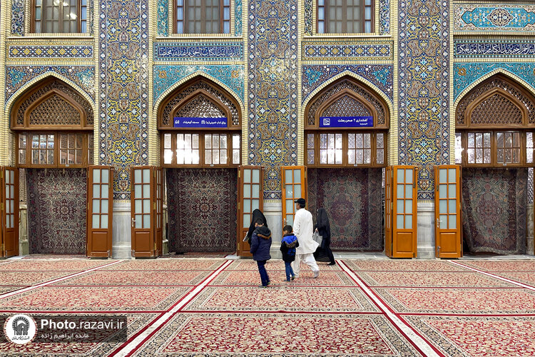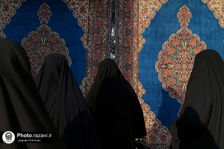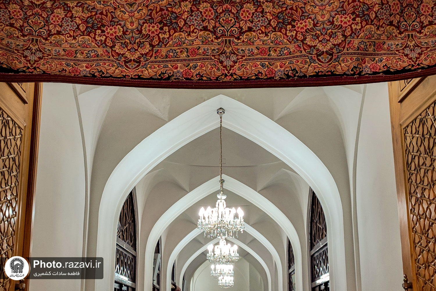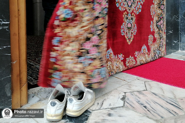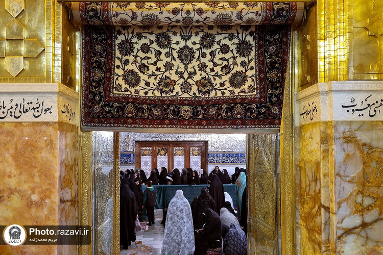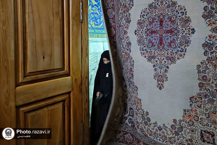 زیر پای زائرها یا آویزان به درگاه‌ها بستگی دارد کجا قسمتش شود. هر زائر که می‌خواهد وارد شود محو نقشه زیبایش می‌شود و دستی به رویش میکشد و داخل میشود. شاید اگر این فرش‌ها را مرز بهشت خواند بیراه نباشد.