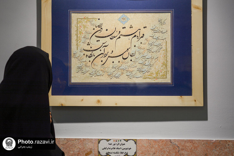 نمایشگاه خوشنویسی«گلبانگ سربلندی» با همکاری هیئت کتاب الثقلین اصفهان در نگارخانه موزه حرم مطهر رضوی به مناسبت دهه کرامت برگزار شد. در این نمایشگاه 48 تابلوی خوشنویسی از 40 هنرمند خطاط با محوریت احادیث، منقبت، ادعیه و زیارت امام رضا(علیهالسلام) در قالب خطوط نسخ، نستعلیق، شکسته نستعلیق، ثلث به نمایش گذاشته شده است.