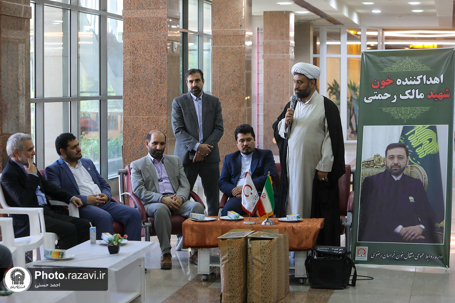 در ایام بزرگداشت چهلمین روز شهدای خدمت؛ شهیدان بزرگوار آیتالله رئیسی، مالک رحمتی و همراهانشان، آیین نامگذاری پایگاه اهداء خون مجتمع امید به نام شهید خدمت «مالک رحمتی»، روز دوشنبه 11 تیرماه 1403 با حضور مدیرکل انتقال خون استان خراسان رضوی و جمعی از مسئولان آستان قدس رضوی، برگزار شد.