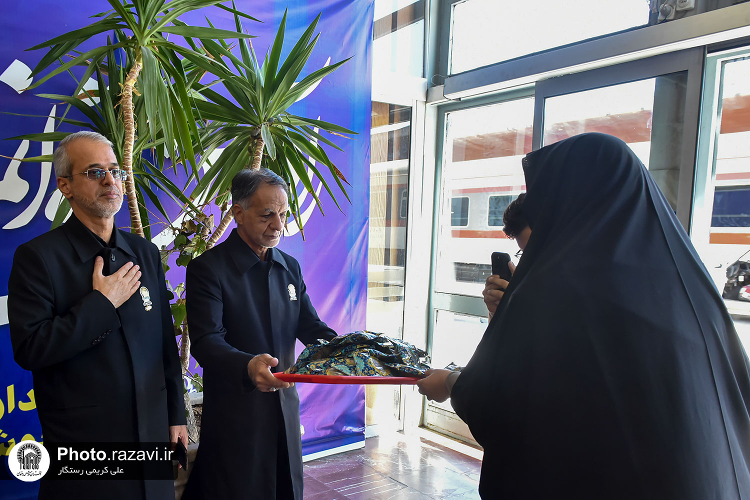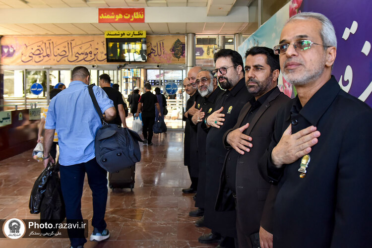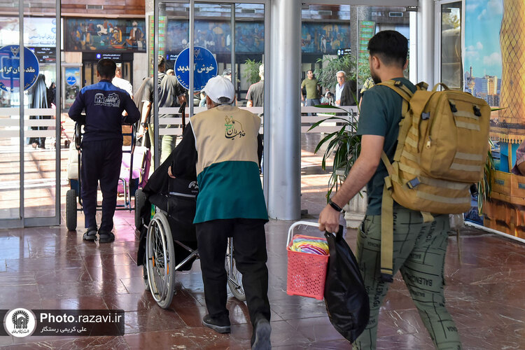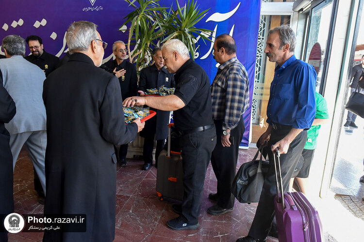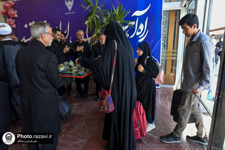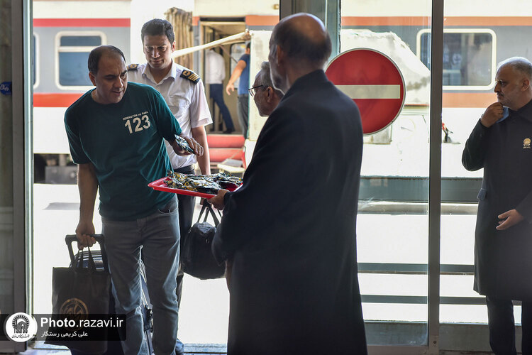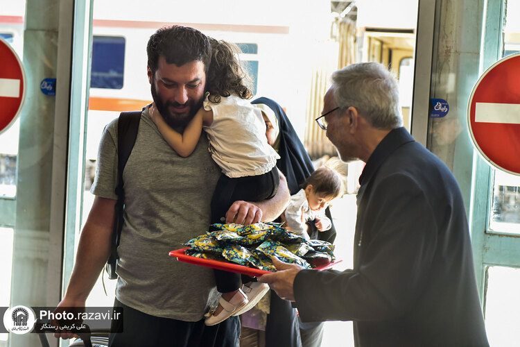 مراسم استقبال از زائرین امام رضا علیه‌السلام در دهه آخر صفر توسط خادمین بارگاه رضوی یکشنبه 11 شهریور 1403 در ایستگاه راه آهن شهید رئیسی مشهد مقدس برگزار شد.