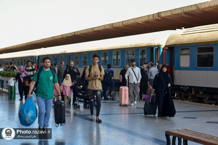استقبال از زائرین دهه آخر صفر در ایستگاه راه آهن شهید رئیسی مشهد