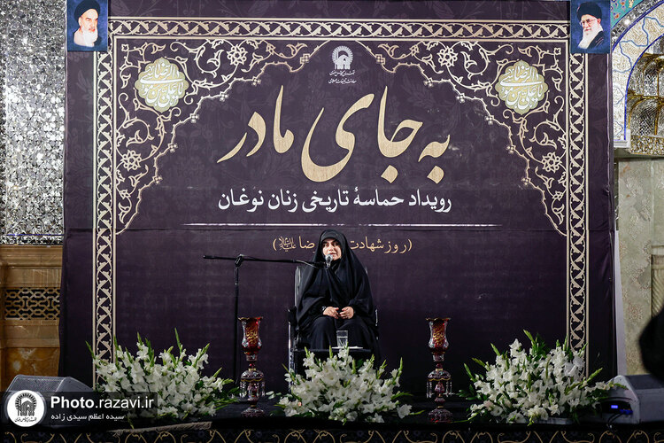 بانوان مشهدی در سالروز شهادت امام رضا(علیه السلام) در مراسم رویداد حماسی تاریخی زنان نوغان با عنوان «به جای مادر» با شاخههای گل به سمت حرم رضوی حرکت کردند و پس از ورود به بارگاه منور رضوی در رواق دارالمرحمه گرد هم آمدند و به سوگواری و نوحهخوانی پرداختند.