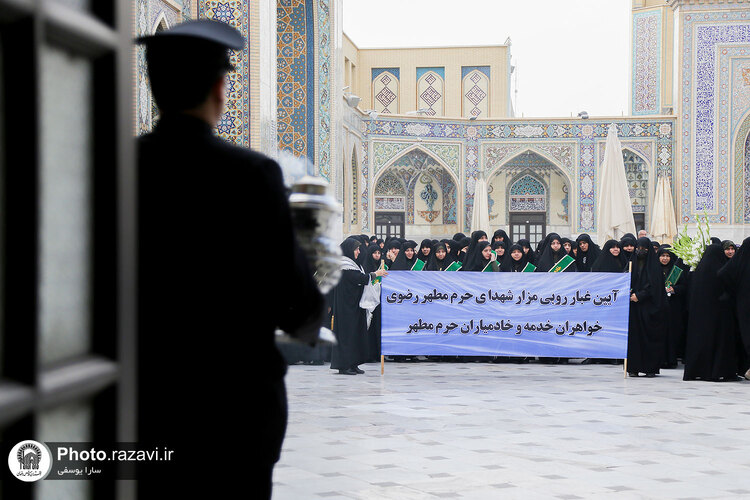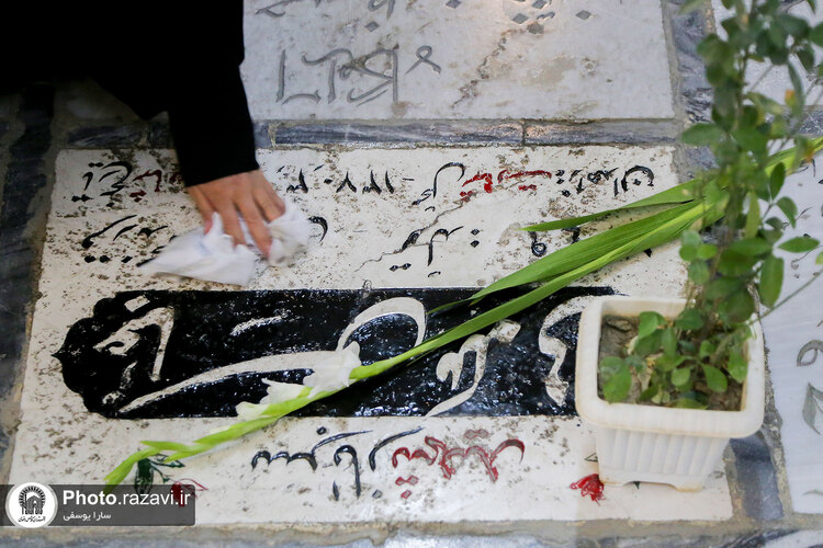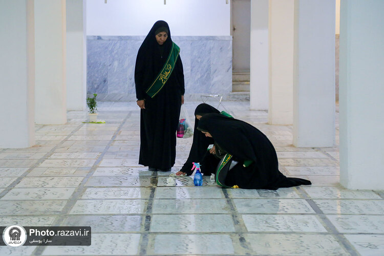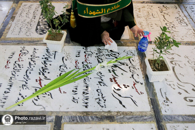 مراسم غبارروبی مزار شهدای مدفون در حرم مطهر رضوی به مناسبت هفته دفاع مقدس با حضور خواهران خدمه و خادمیاران حرم امام رضا علیهالسلام روز پنجشنبه ۵ مهر ١۴٠٣ در بهشت ثامن الائمه صحن قدس برگزار شد.