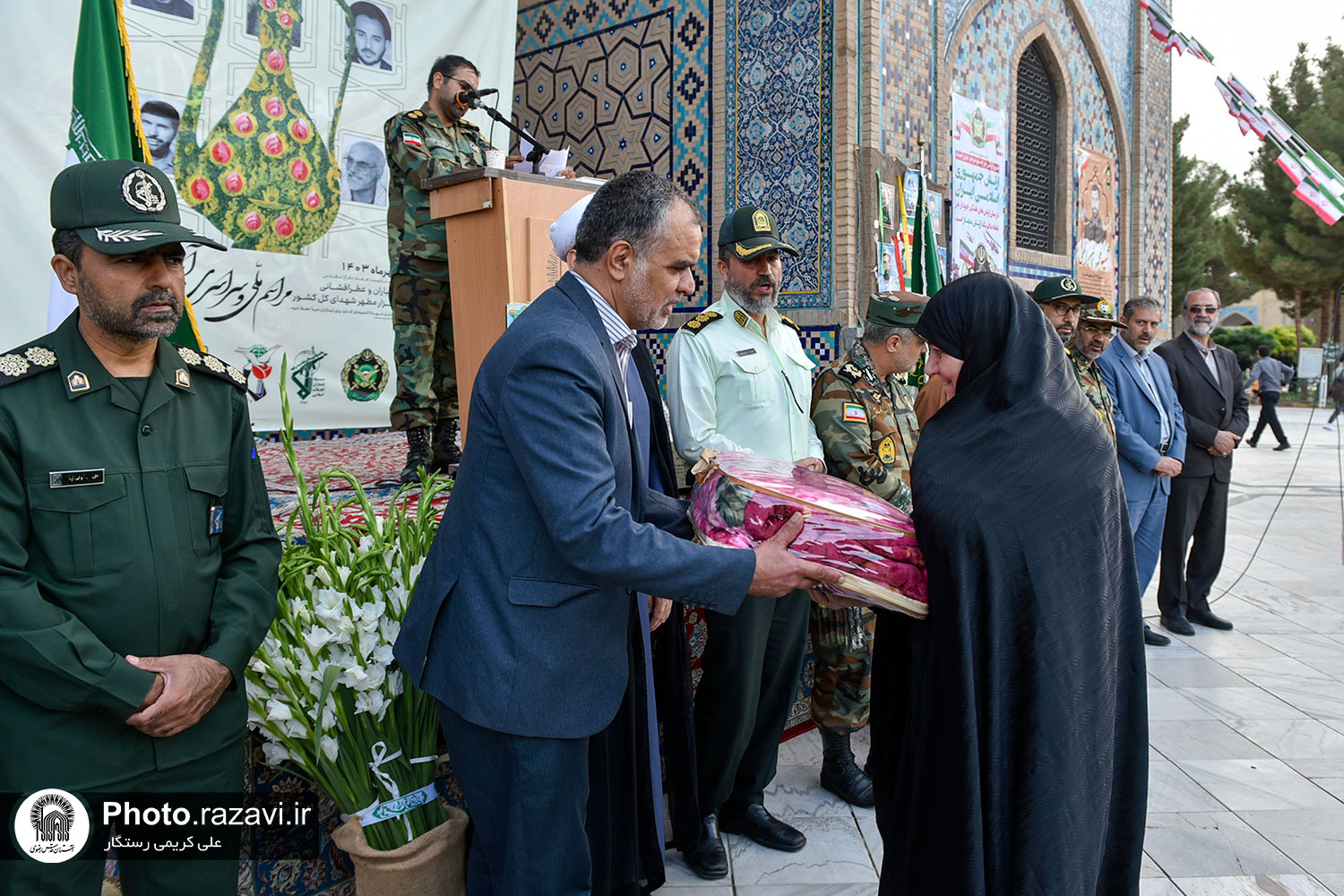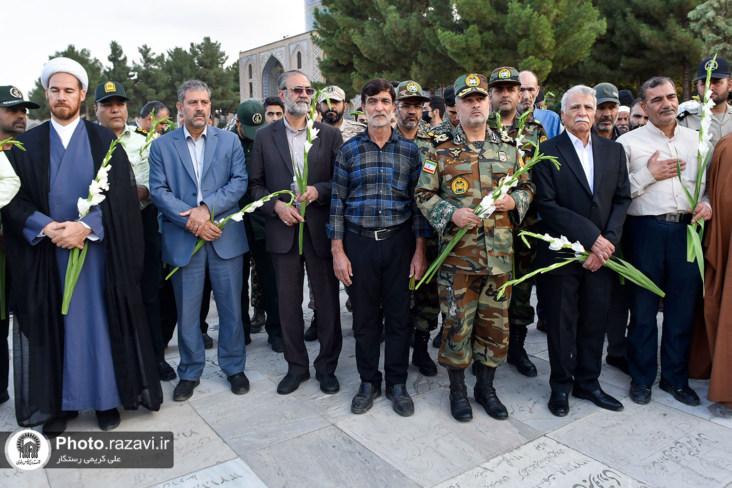 به مناسبت هفته دفاع مقدس، مراسم گرامیداشت و ادای احترام به مقام شامخ شهدای مدفون در آرامگاه خواجه ربیع برگزار شد. این برنامه همراه با آئین عطر افشانی و غبارروبی گلزار شهدا و با حضور خانواده معظم شهدا و ایثارگر، نیروهای نظامی و انتظامی و جمعی از مسئولین برپا شد.