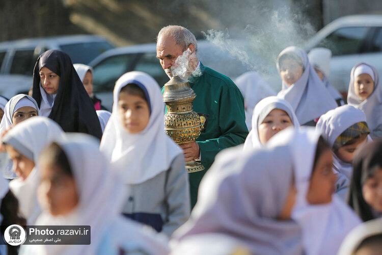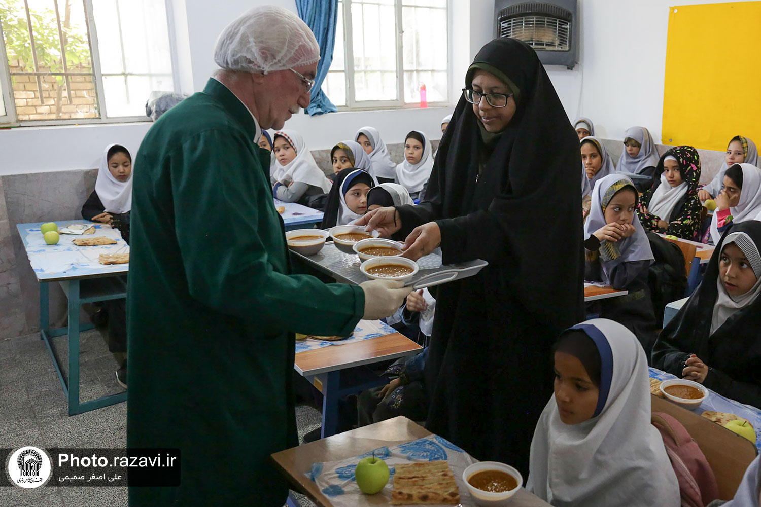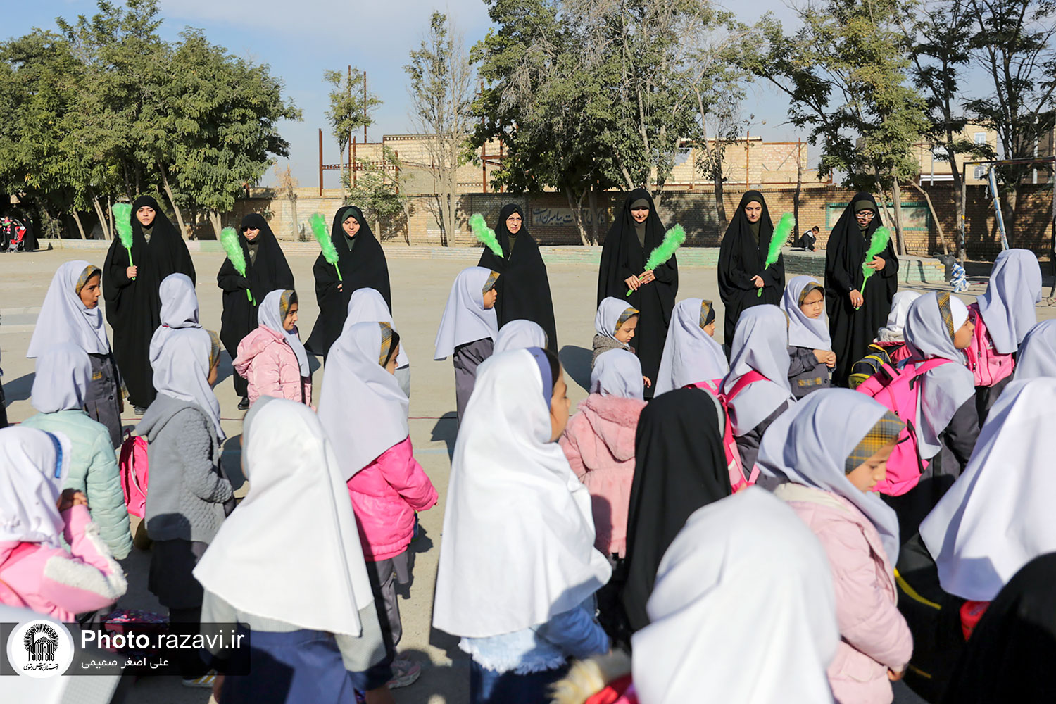 جمعی از خدام حرم مطهر رضوی به مناسبت چهارشنبههای امام رضایی ضمن حضور در دبستان دخترانه فلق از دانشآموزان این مدرسه با صبحانه گرم و متبرکات رضوی پذیرایی کردند.