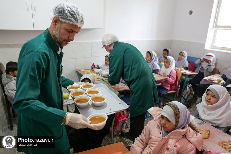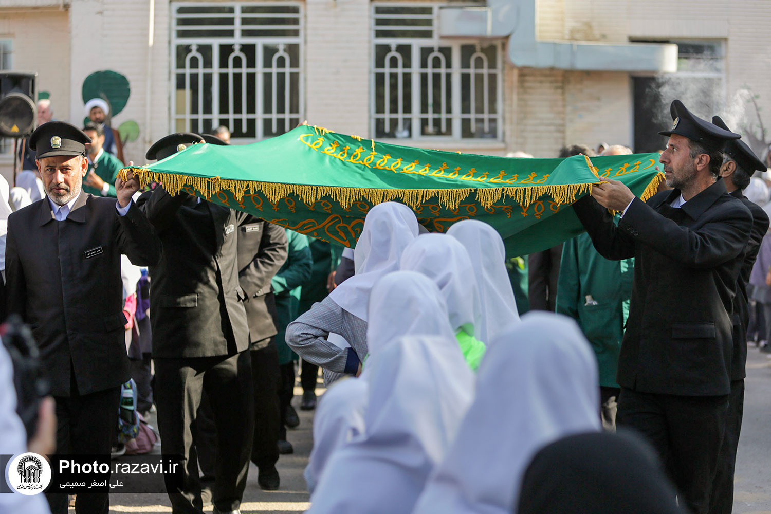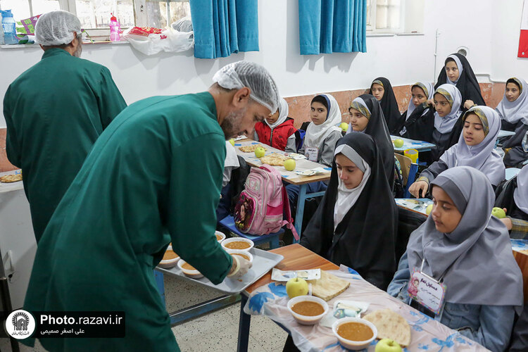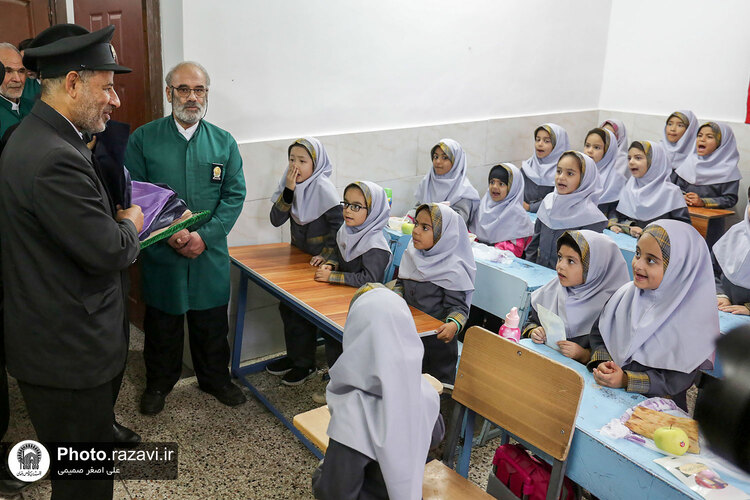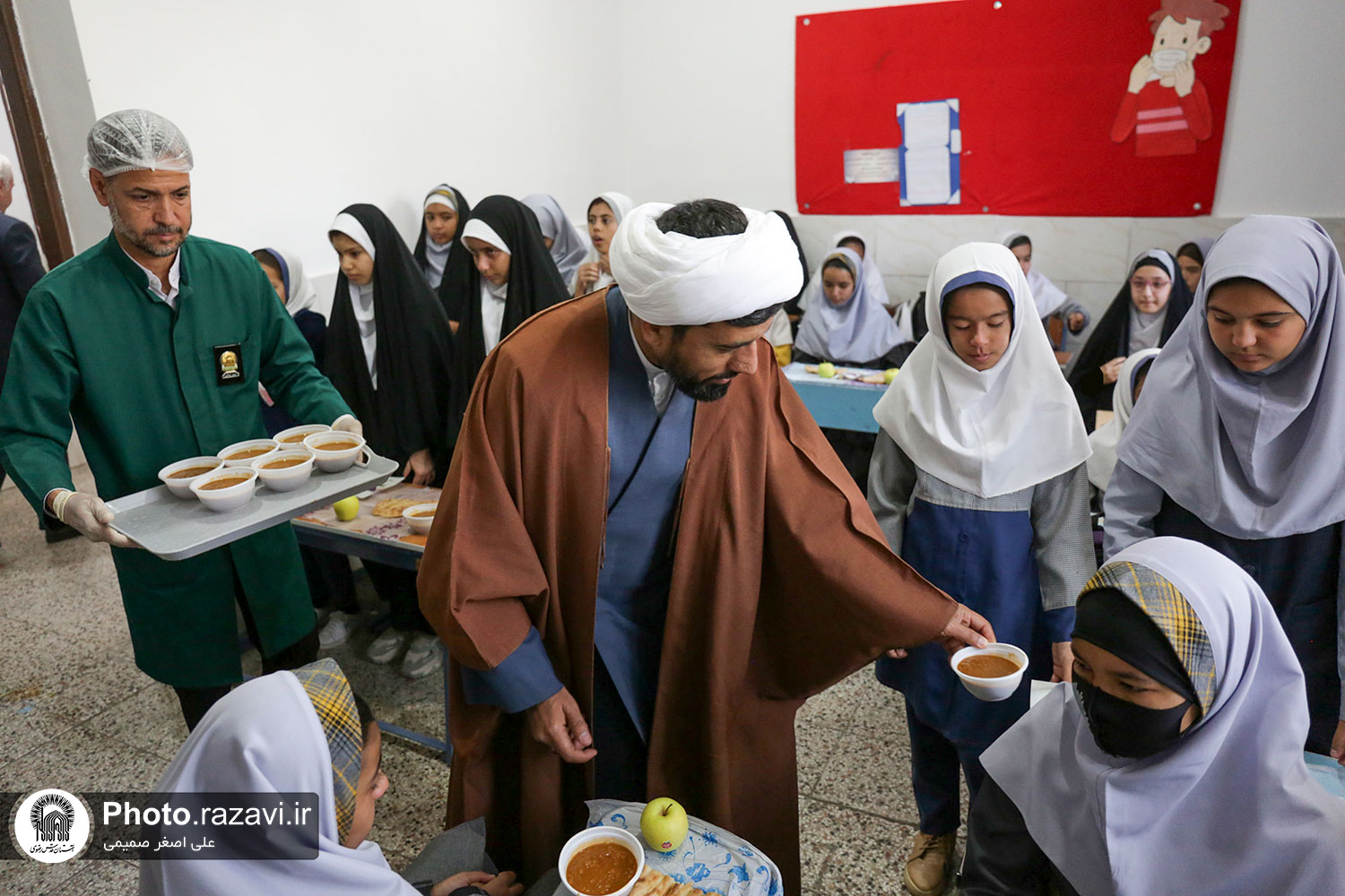 جمعی از خدام حرم مطهر رضوی به مناسبت چهارشنبههای امام رضایی ضمن حضور در دبستان دخترانه فلق از دانشآموزان این مدرسه با صبحانه گرم و متبرکات رضوی پذیرایی کردند.