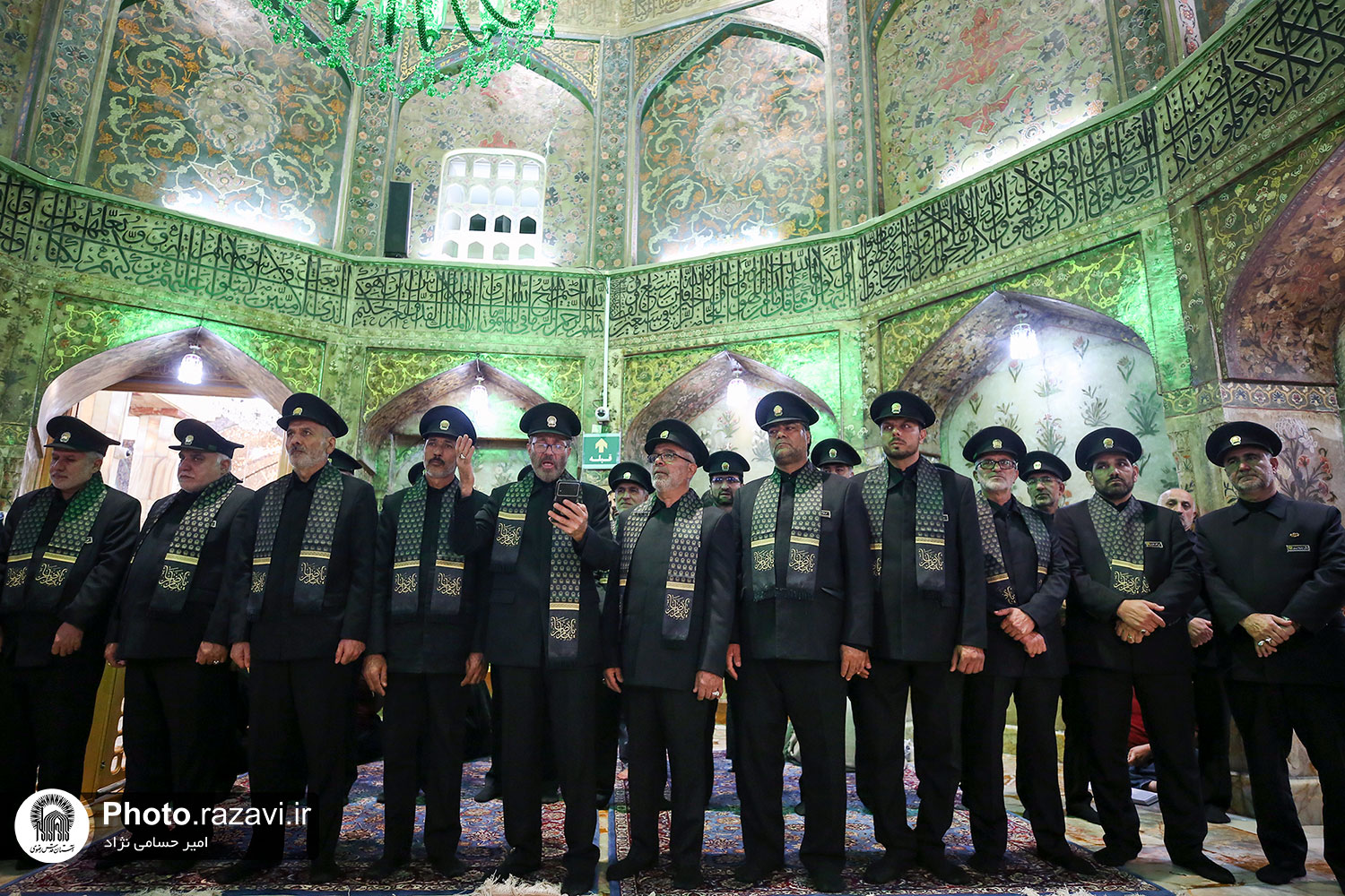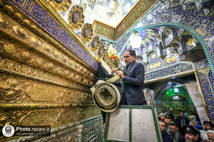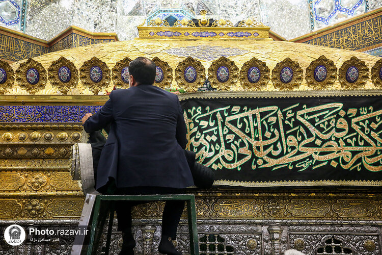 آیین سیاهپوشی ضریح مطهر حضرت معصومه سلاماللهعلیها در آستانه سالروز شهادت بانوی کرامت، روز یکشنبه ٢٢ مهر ١۴٠٣ در مسجد بالاسر حرم مطهر با حضور خادمان آستان قدس رضوی برگزار شد.