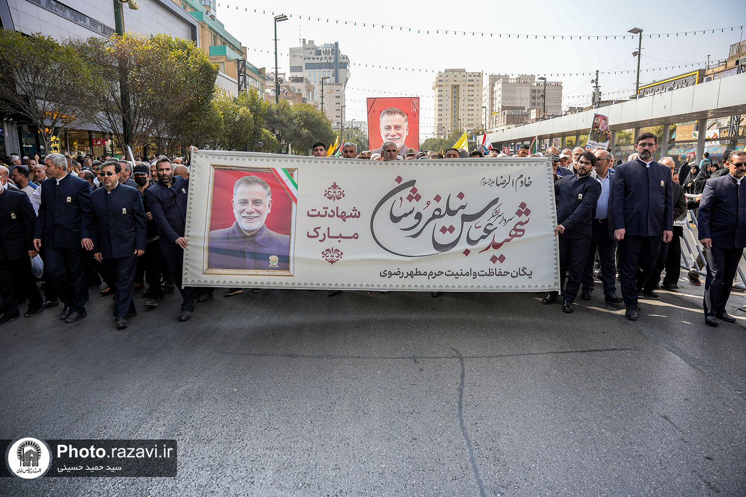 مراسم تشییع پیکر شهید عباس نیلفروشان در مشهد با استقبال باشکوه خادمان، زائران و مجاوران امام رضا علیهالسلام روز چهارشنبه 25 مهر 1403 از میدان بسیج به سمت حرم مطهر رضوی برگزار شد.