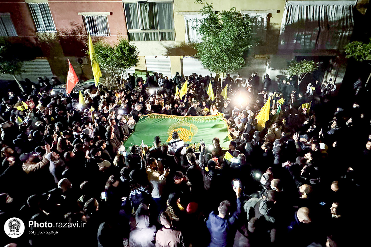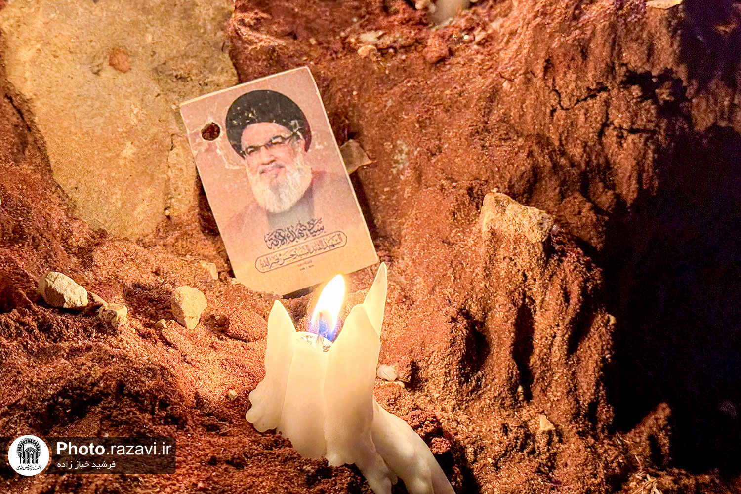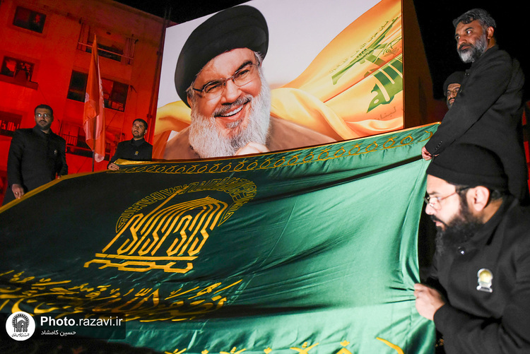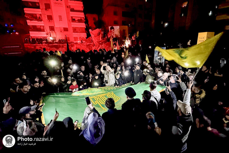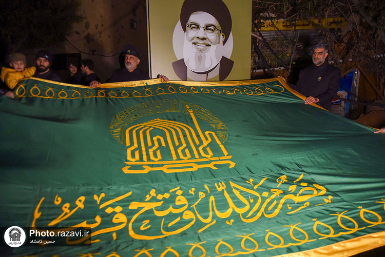 حضور خدام و پرچم گنبد حرم مطهر رضوی در محل شهادت سیدحسن نصرالله