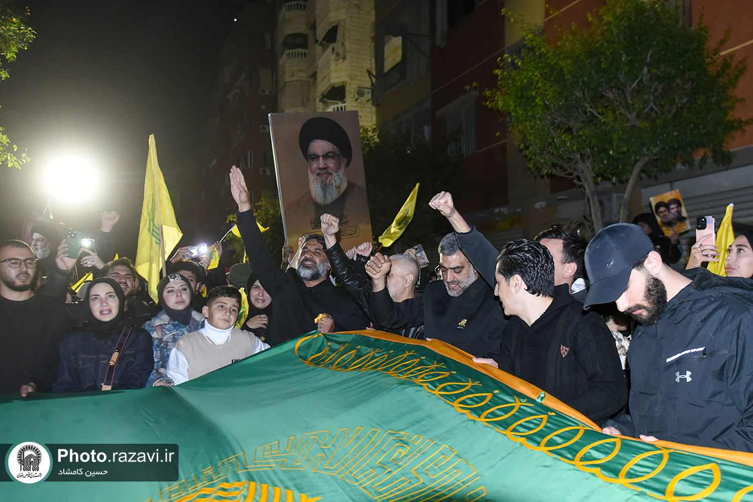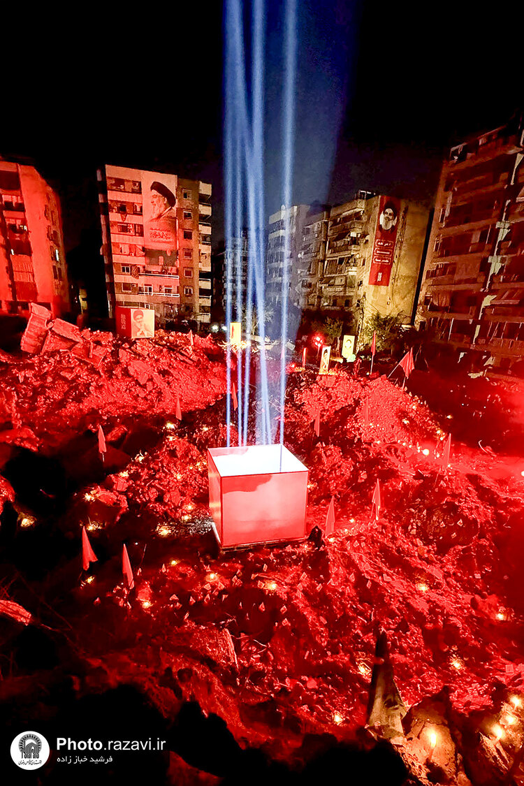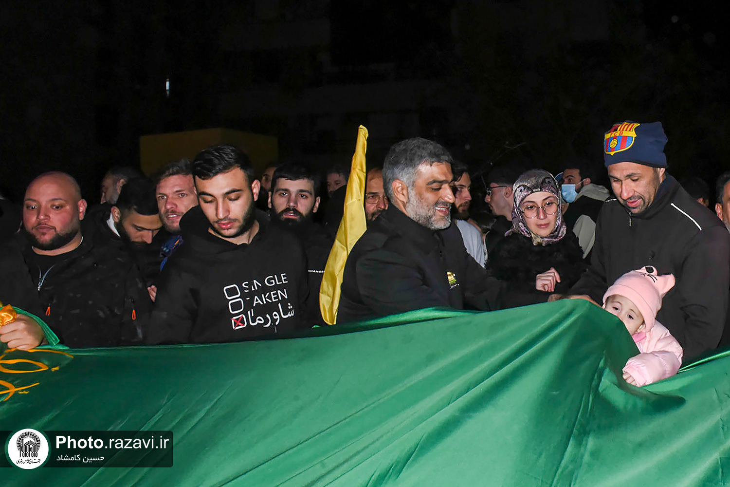 خدام حرم مطهر رضوی که به جهت خدمت‌رسانی به مردم لبنان به این کشور سفر کردند، شامگاه شنبه ١٠ آذر 1403 در ادامه پویش «لبنان در پناه امام رئوف» به همراه پرچم گنبد منور رضوی در محل مقتل شهید سیدحسن نصرالله؛ دبیر کل شهید حزب الله لبنان حضور یافتند.