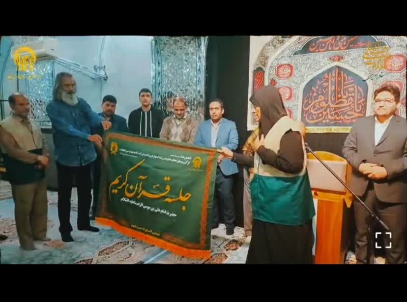 طی مراسمی معنوی، پرچم متبرک جلسات خانگی قرآن کریم آستان قدس رضوی به تولیت امام‌زاده عبدالمُهیمن اهدا شد.