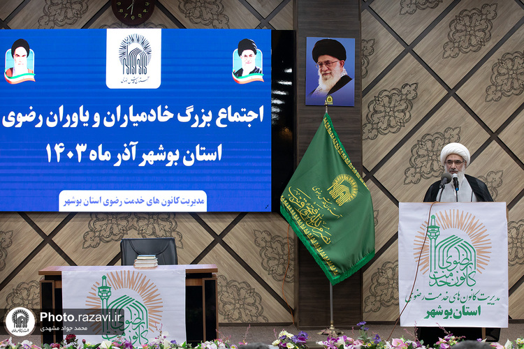 اجتماع خادمیاران و یاوران رضوی استان بوشهر، شامگاه سهشنبه ٢٠ آذر ١۴٠٣ با سخنرانی آیت الله احمد مروی؛ تولیت آستان قدس رضوی برگزار شد.