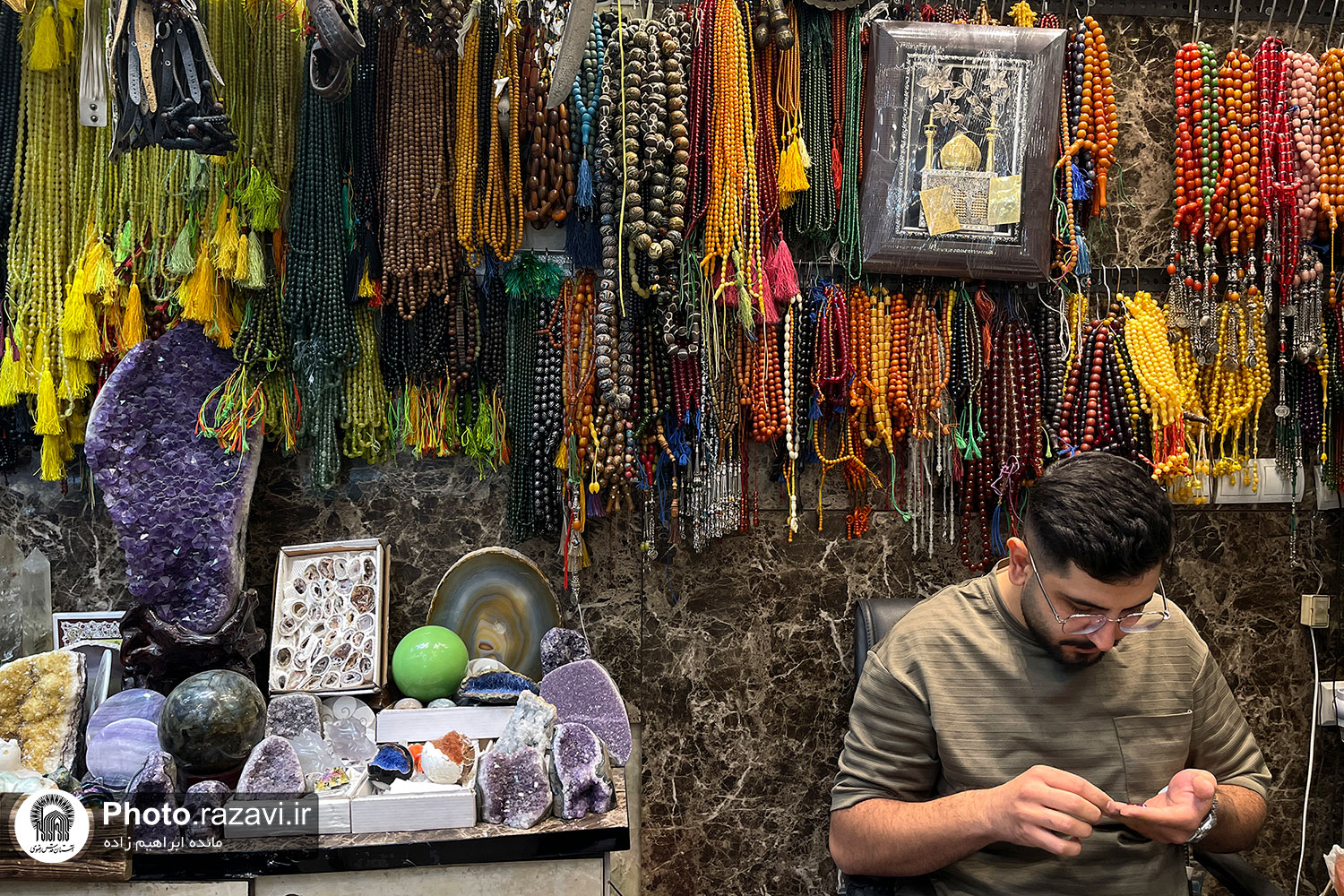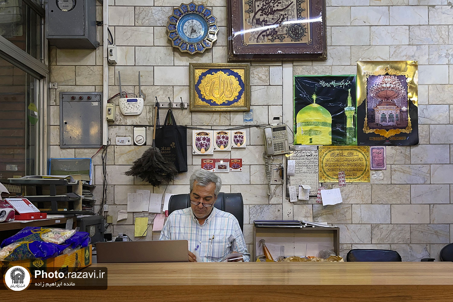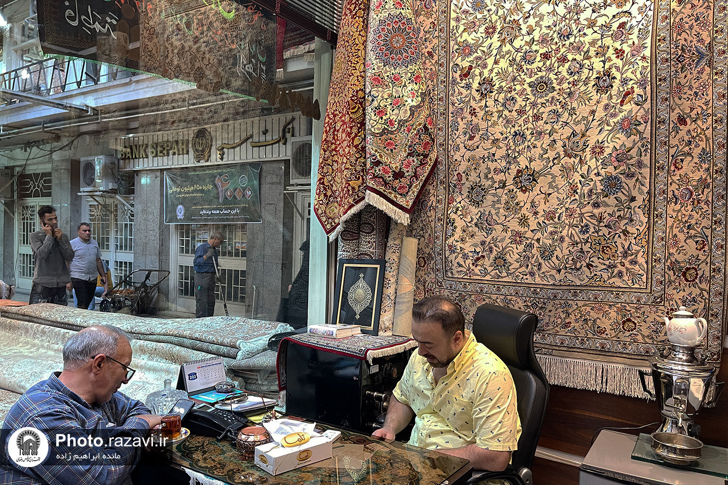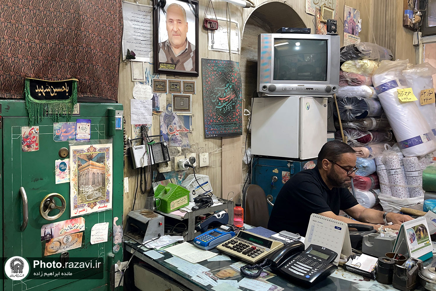 نگاهشان که به عکس میافتد ناخودآگاه چشمهایشان بسته میشود، دست روی سینه میگذارند و خود را در صحن و سرای انیس النفوس تصور میکنند، نفس عمیقی میکشند و هوای حرم را در کالبد و روحشان خیال می کنند و سلامی محضر مولا میدهند. کیلومترها دورتر، عاشقان علی ابن موسی الرضا در جایی که روزمرگی و کار و شلوغیها آرامش آنها را کم کرده است، یک عکس آرام جانشان میشود. گزارش تصویری پیش رو گوشهای از دلدادگی مردم در بازار تهران به امام رئوف است.