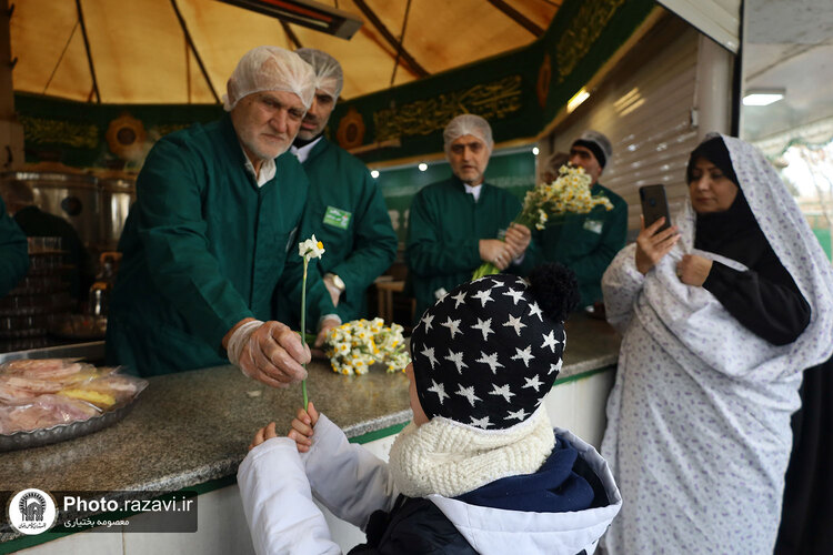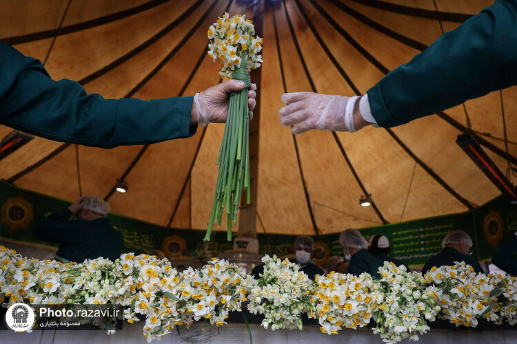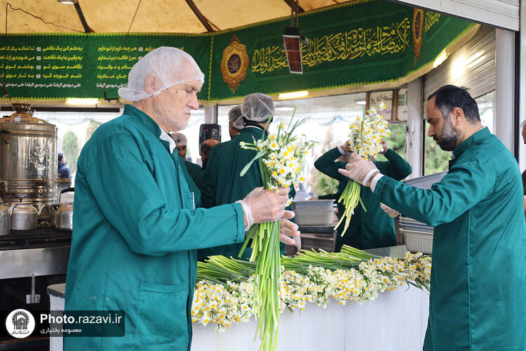 به مناسبت میلاد حضرت امام محمد باقر علیهالسلام، تعداد ٨هزار شاخه گل نرگس توسط کانون خادمیاری استان مازندران به عنوان نشانهای از عشق و ارادت به اهل بیت علیهم السلام در چایخانه رضوان حرم مطهر رضوی توزیع شد.