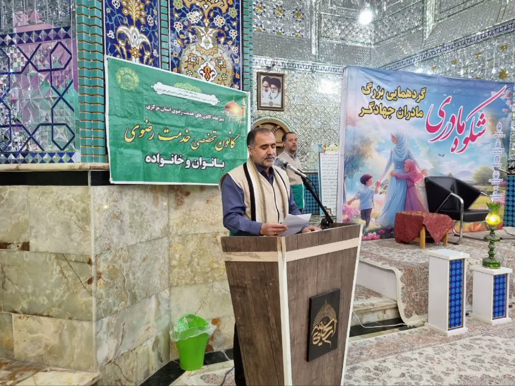 همچنین در ادامه این همایش، زهرا کرمی دبیر کانون خدمت رضوی بانوان و خانواده استان مرکزی نیز با بیان اینکه طرح شکوه مادری یکی از برنامه‌های مهم این کانون است، اظهار داشت: ایفای نقش مادری، فرزندآوری و افزایش جمعیت از رسالت‌های محوری بانوان در نظام اسلامی است؛ لذا از جنبه‌های سیاسی، اجتماعی و اقتصادی برای کشور حائز اهمیت بوده و متأسفانه تهدیدات جدی در نتیجه کاهش جمعیت و سالمند شدن جمعیت، متوجه کشور است.