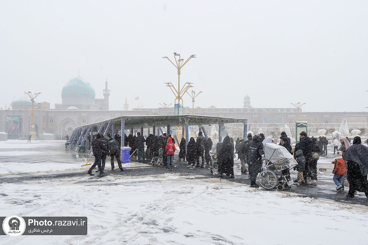 بارش برف از صبح یکشنبه 21 بهمن 1403 در مشهد آغاز شد و صحن و سرای حرم مطهر امام رضا (ع) را سپیدپوش کرد. این بارش برف حال و هوای زیارت زائران بارگاه منور رضوی را زیباتر از هر زمان دیگری ساخت.