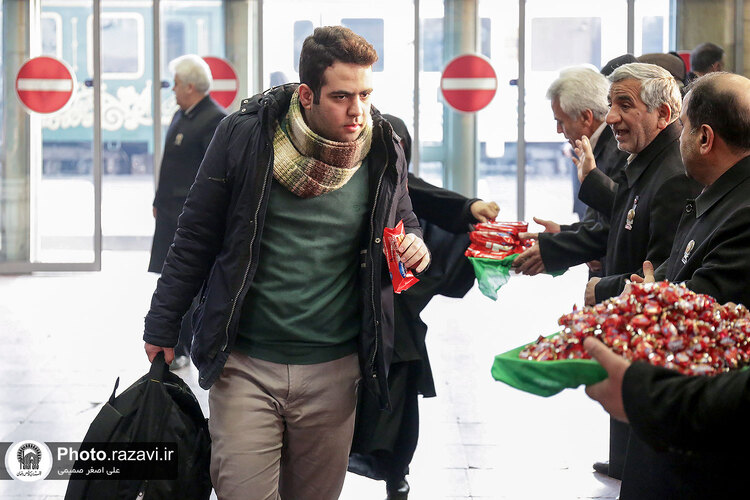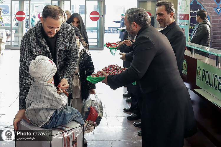به مناسبت ایام نیمه شعبان و میلاد امام زمان عجل الله تعالی فرجه الشریف، مراسم استقبال از زائرین امام رضا علیهالسلام و توزیع متبرکات توسط خادمین بارگاه منور رضوی در ایستگاه شهید رئیسی راه آهن مشهد مقدس برگزار شد.