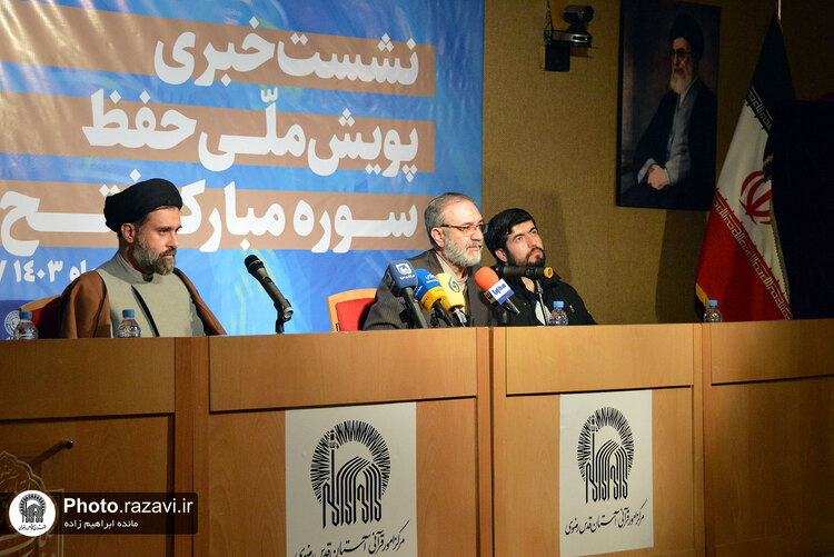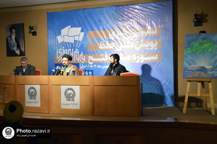 نشست خبری پویش ملی حفظ سوره مبارکه فتح در ماه مبارک رمضان با حضور حجت الاسلام سید مسعود میریان؛ مدیر مرکز امور قرآنی آستان قدس رضوی در جمع اصحاب رسانه، روز دوشنبه ۲۹ بهمن 1403 در محل کتابخانه و موزه ملی ملک برگزار شد.