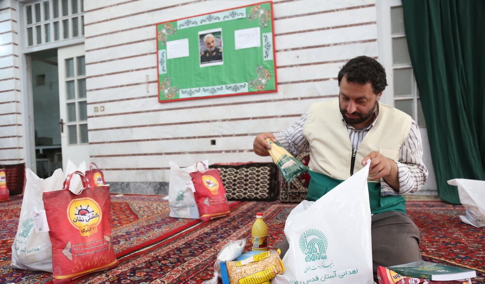 توزیع بسته های معیشتی در بین نیازمندان کمیجانی از سوی خادمیاران رضوی