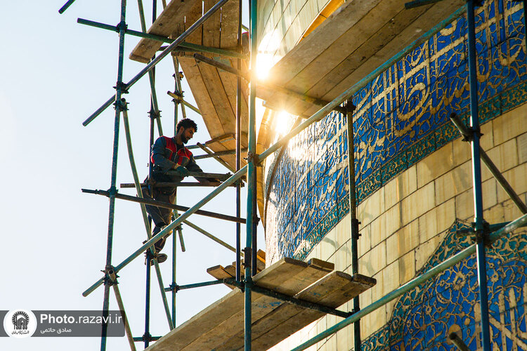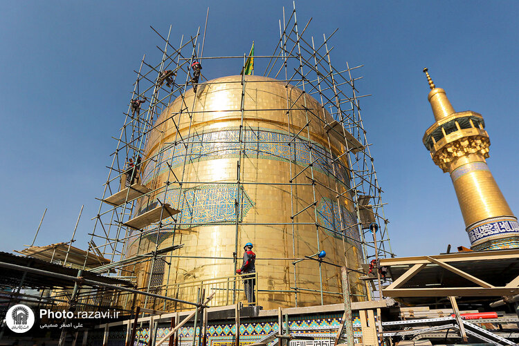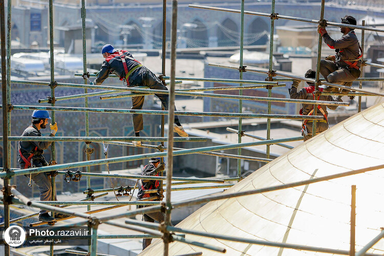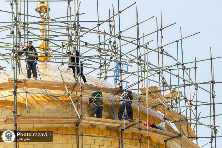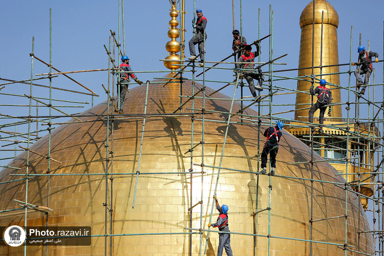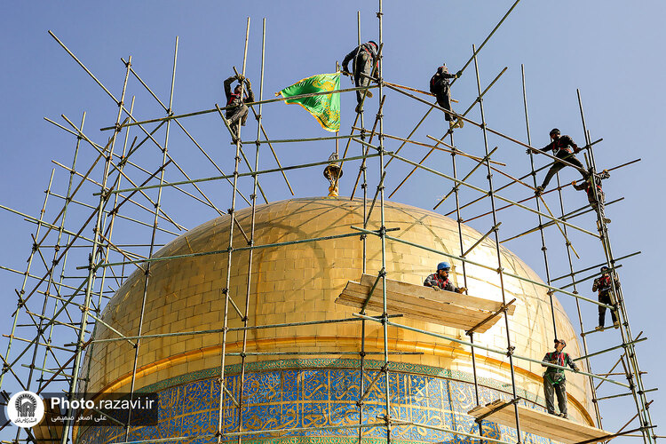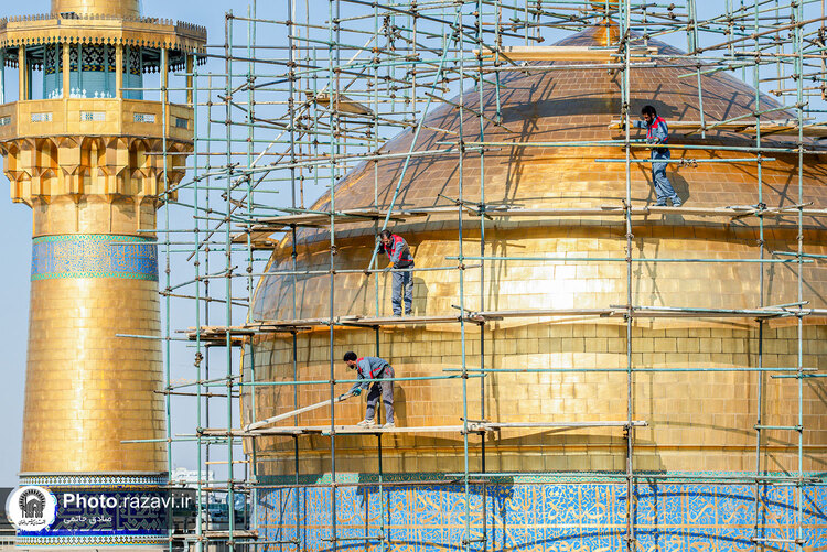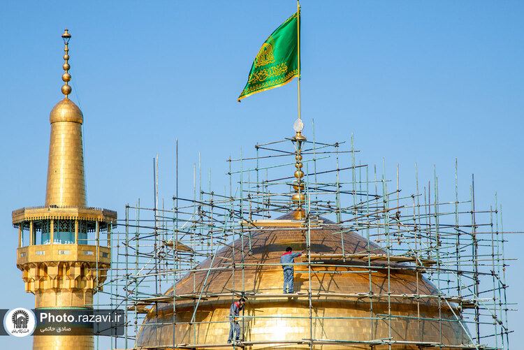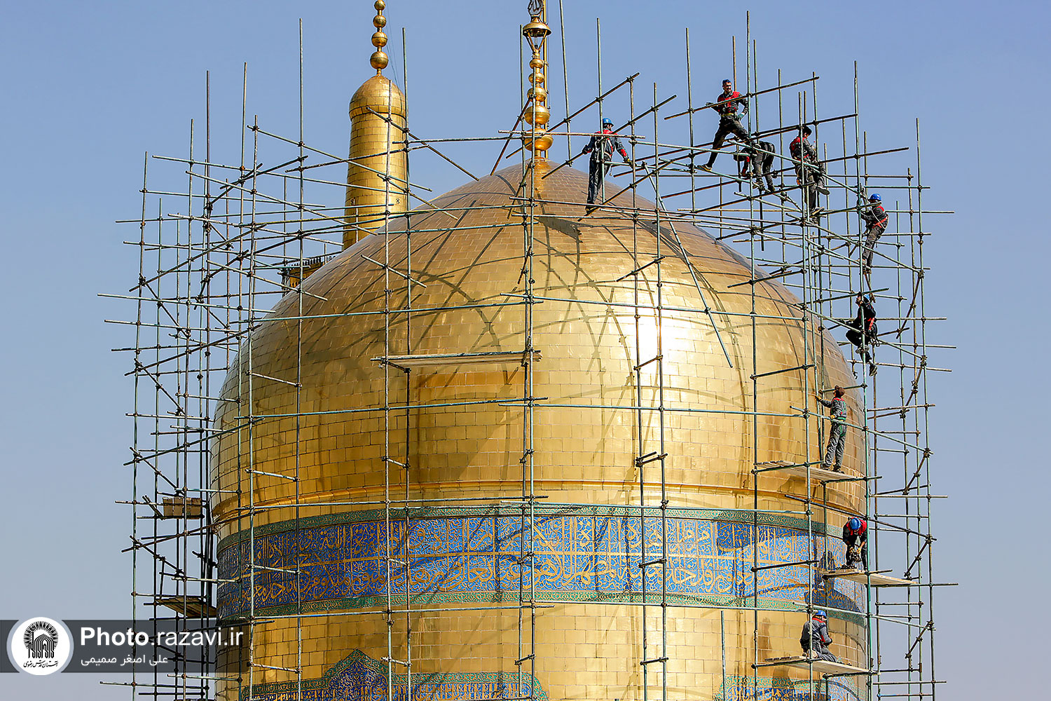 تنظیف گنبد مطهر حرم امام رضا علیه‌السلام