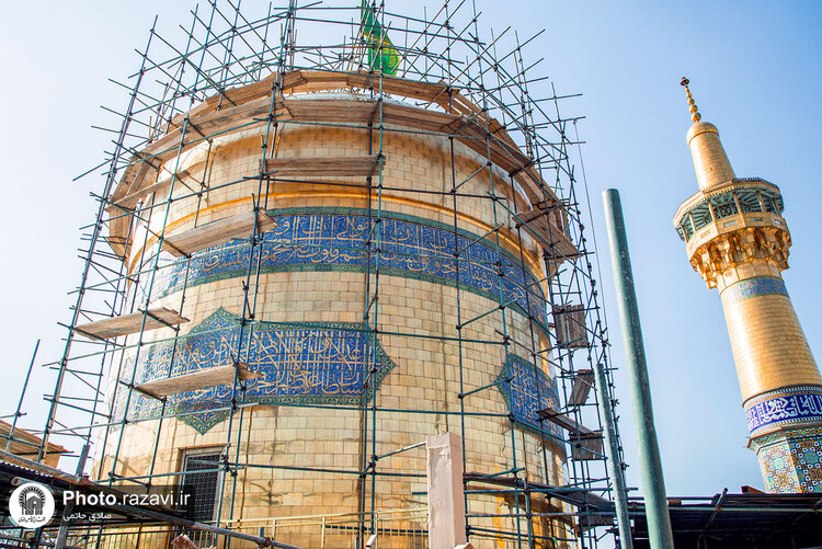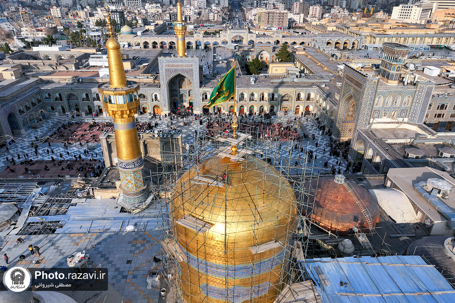 عملیات شست‌وشو و غبارروبی گنبد مطهر حرم حضرت رضا علیه‌السلام جهت رفع غبار و جلای بیشتر در آستانه عید نوروز، از پنجشنبه 23 اسفند 1403 به مدت چهار روز با حضور 11 نفر از استادکاران سازمان عمران و نگهداری حرم مطهر رضوی در حال برگزاریست.
