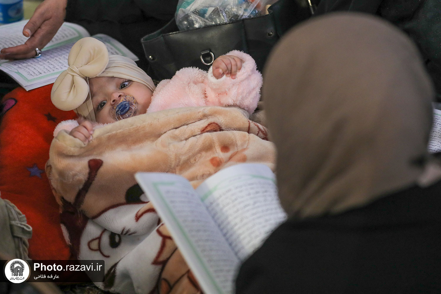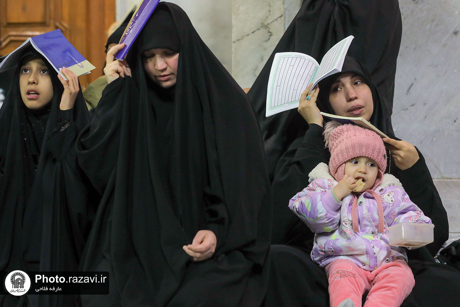 در شبهای قدر، کودکان و نونهالانی که همراه با پدر و مادر خود به حرم امام رضا علیهالسلام مشرف شدهاند، به تاسی از والدین مشغول دعا و مناجات میشوند.