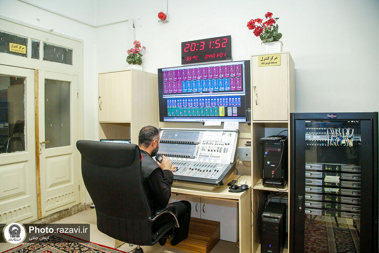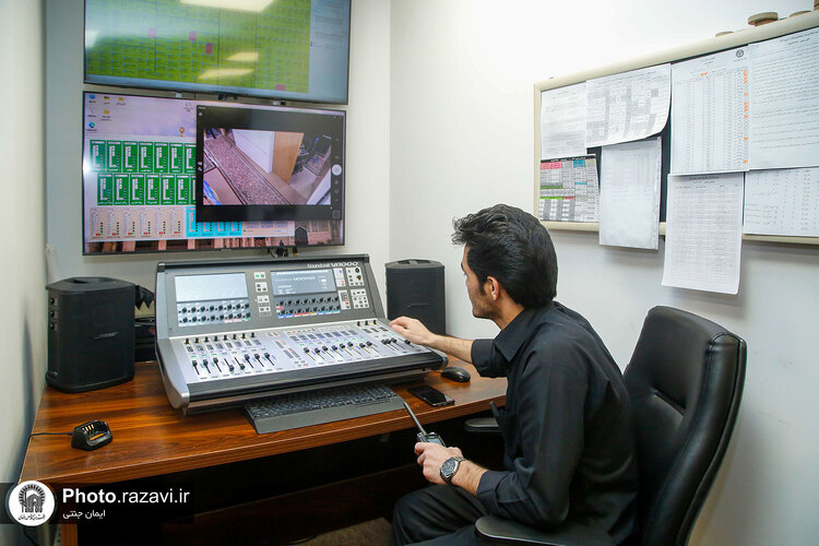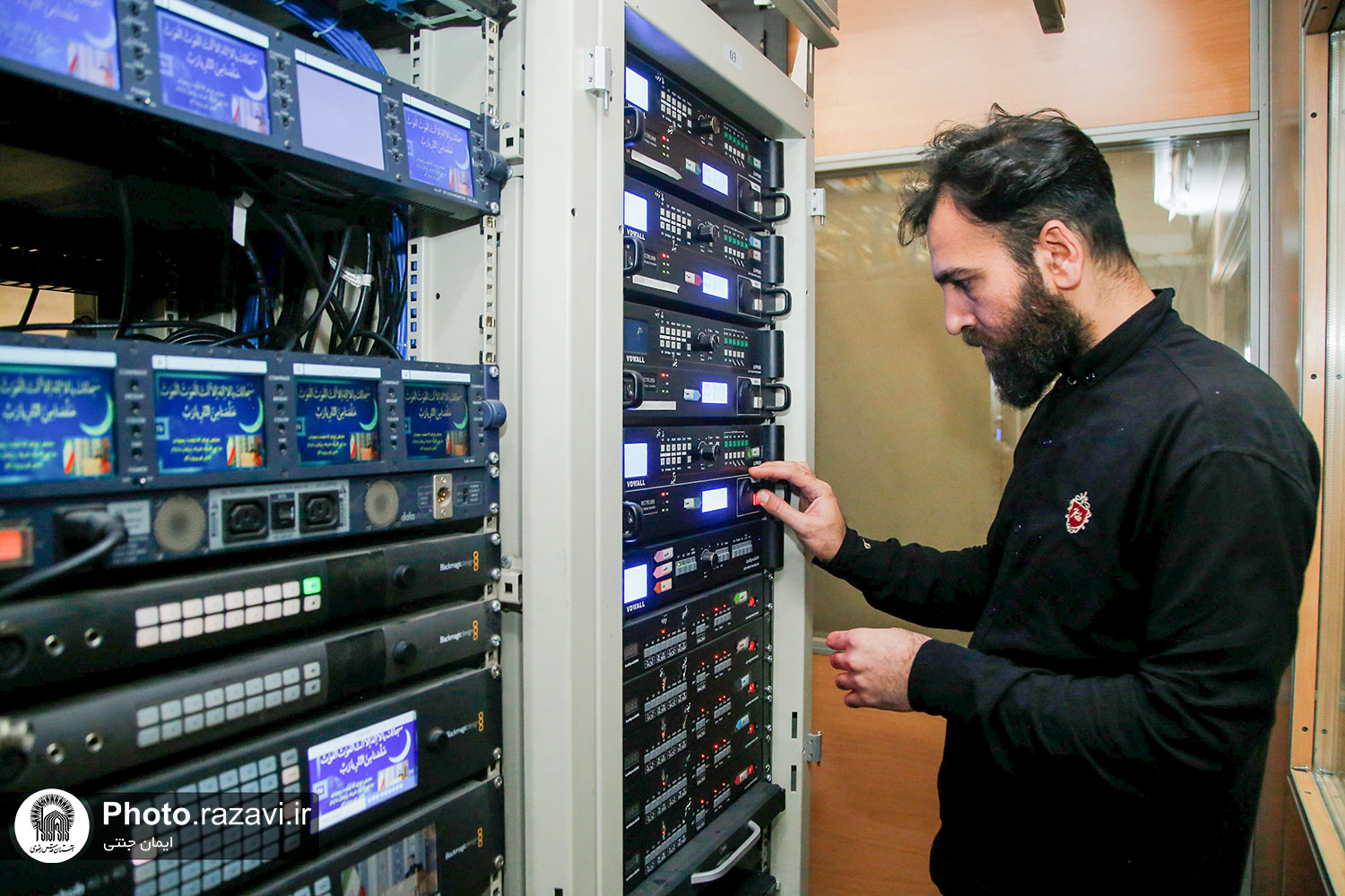 خادمان عمرانی سازمان عمران و نگهداری حرم مطهر رضوی در بخش صوت و تصویر برای اجرای برنامه‌های مناسبتی و سخنرانی‌های صورت گرفته در حرم مطهر رضوی به صورت شبانه‌روزی در ایام ماه مبارک رمضان و شب‌های قدر اقدام به آماده‌سازی نمایشگرها و سیستم‌های صوتی می‌کنند.