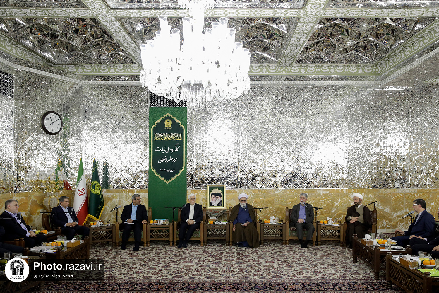 کارگروه ملی زیارت به منظور بررسی مسائل مربوط به زیرساختهای زیارت، با حضور آیت الله احمد مروی؛ تولیت آستان قدس رضوی، محمدرضا عارف؛ معاون اول رئیس جمهور و سیدعباس صالحی؛ وزیر فرهنگ و ارشاد اسلامی، روز دوشنبه 18 فروردین 1404 در تالار ولایت حرم امام رضا علیهالسلام برگزار شد.