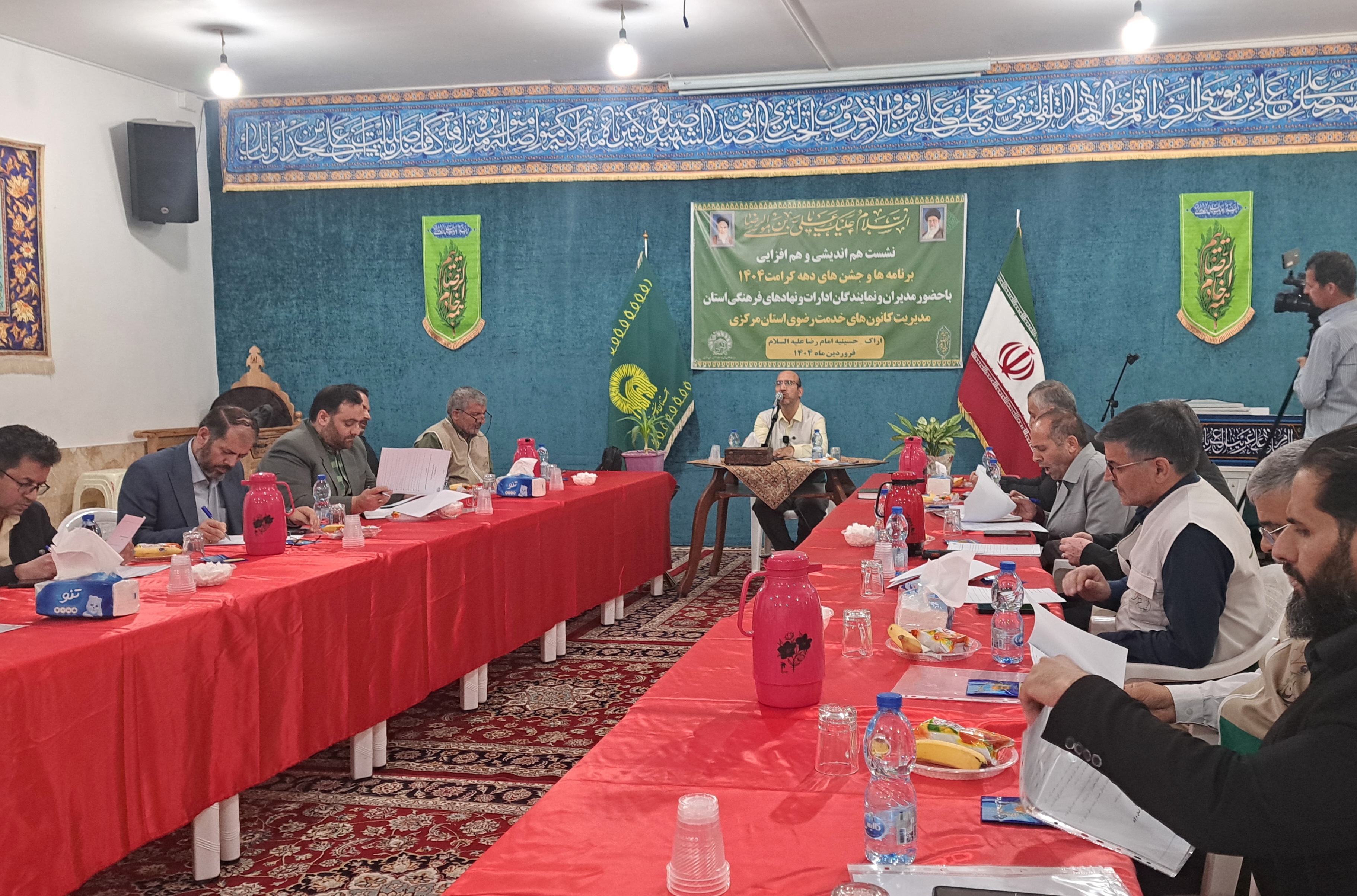 مدیران و نمایندگان ادارات و نهادهای فرهنگی استان همگام با مدیریت کانونهای خدمت رضوی استان مرکزی در حسینیه امام رضا علیه السلام اراک در نشستی به هماندیشی و هم افزایی درخصوص برپایی هرچه باشکوهتر برنامهها و جشنهای دهه کرامت با عطر و بوی رضوی در دیار آفتاب پرداختند.