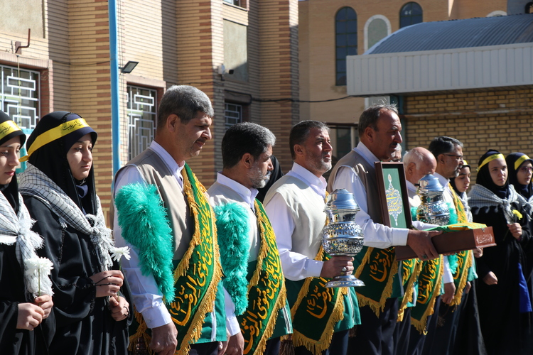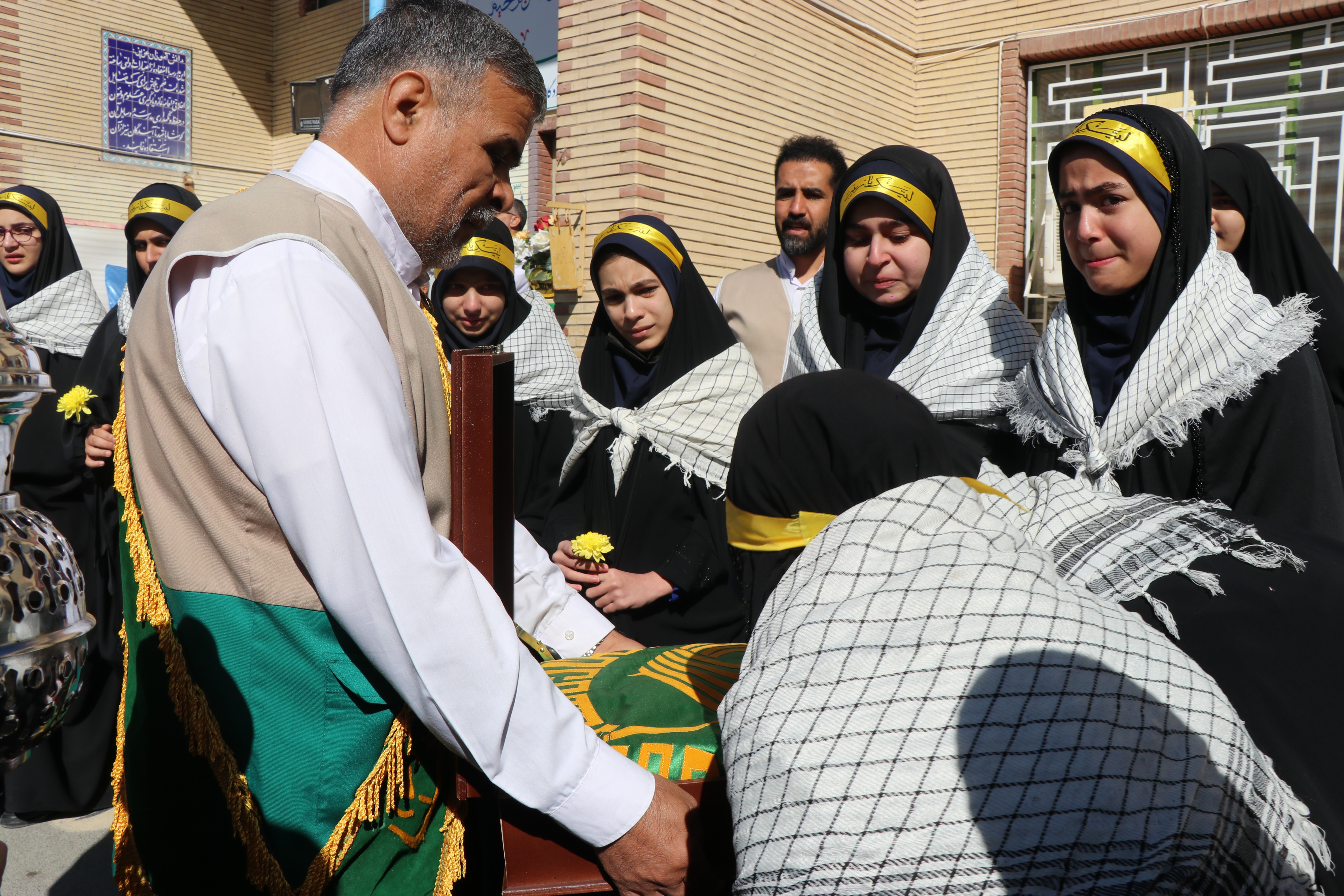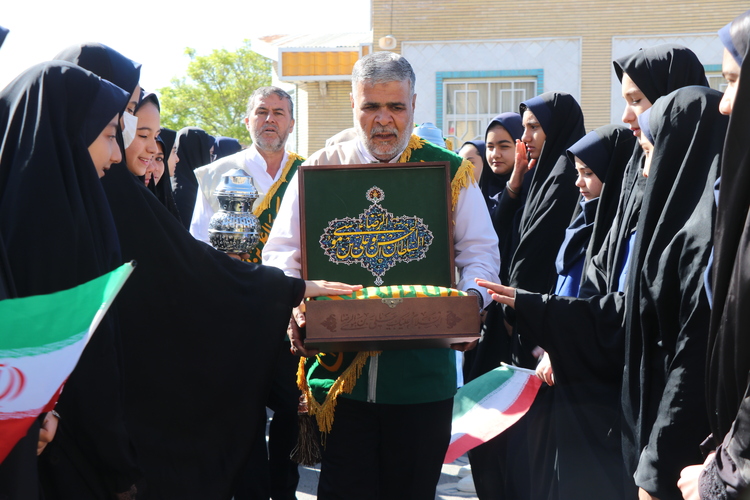 دختران دانش آموز اراکی در زنگ مهر رضوی به استقبال پرچم متبرک امام رضا (ع) رفتند/ گزارش تصویری