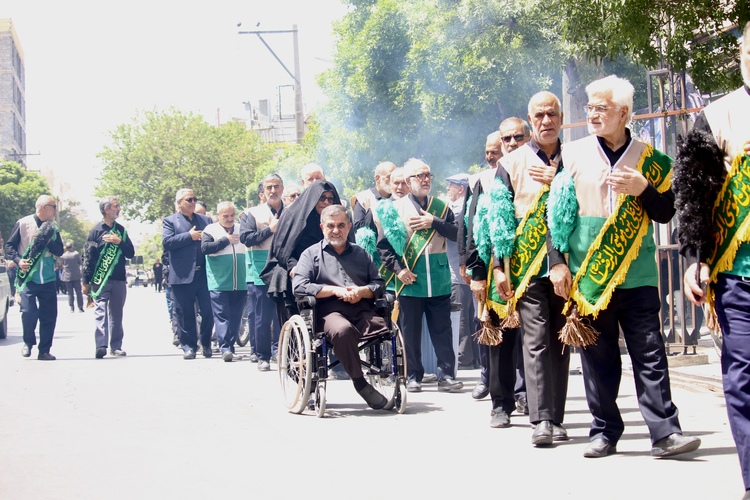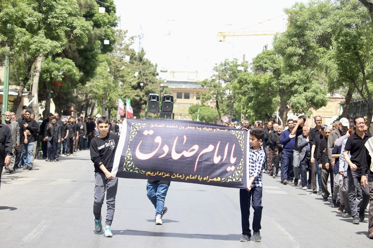 خادمیاران رضوی در قالب هیئت خدامالرضا علیهالسلام، همراه با هیئات مذهبی شهر اراک در عزای حضرت امام صادق (ع) به سوگواری پرداختند. عکاس: محمدعلی علیمحمدی