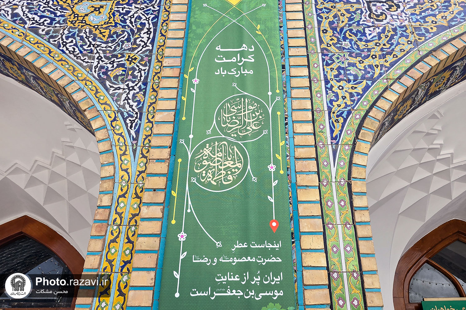 حرم مطهر رضوی در ایام دهه کرامت رضوی، همزمان با ولادت حضرت معصومه سلام الله علیها، با نصب کتیبههای ولادتی، صحنها حال و هوای دیگری به خود گرفته و زائران و مجاوران از راه دور و نزدیک خود را به این بارگاه مقدس میرسانند تا ابراز ارادت خودشان را به خاندان عصمت و طهارت علیهم السلام نشان دهند.